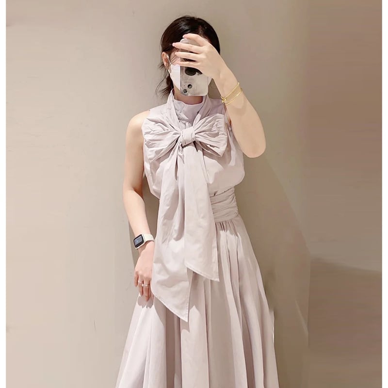 Nomikuma スタイルサマーリボン包帯スタンドネックウーマンブラウス Cuasal ソリッドスイートシックトップスデ 大人ガーリー スウィート キュート カジュアル 夏物 ソリッドカラー