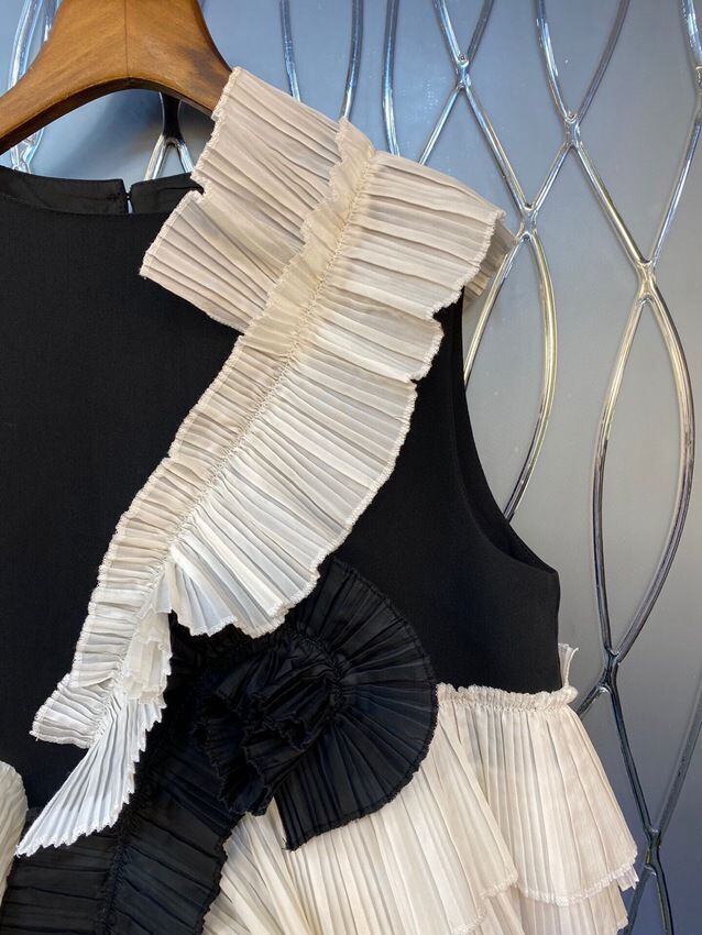 Nomikuma 3D フリルパッチワークヒットカラー不規則ブラウス夏ノースリーブトップス因果デ サマー 夏物