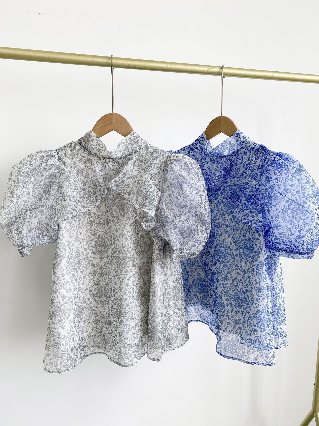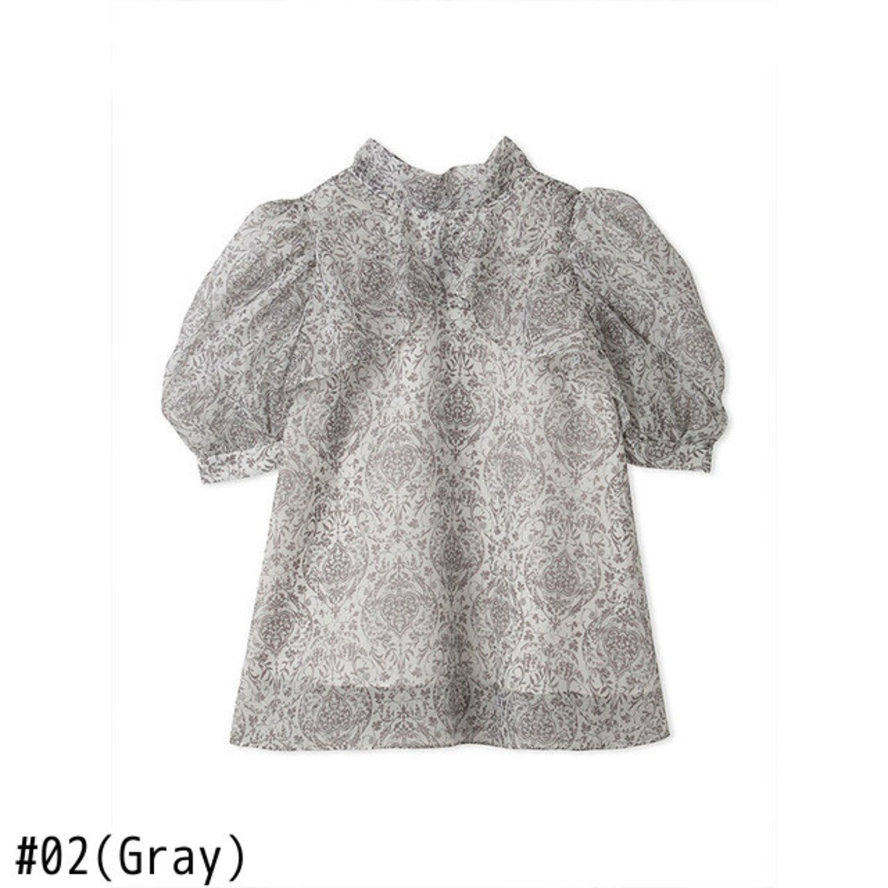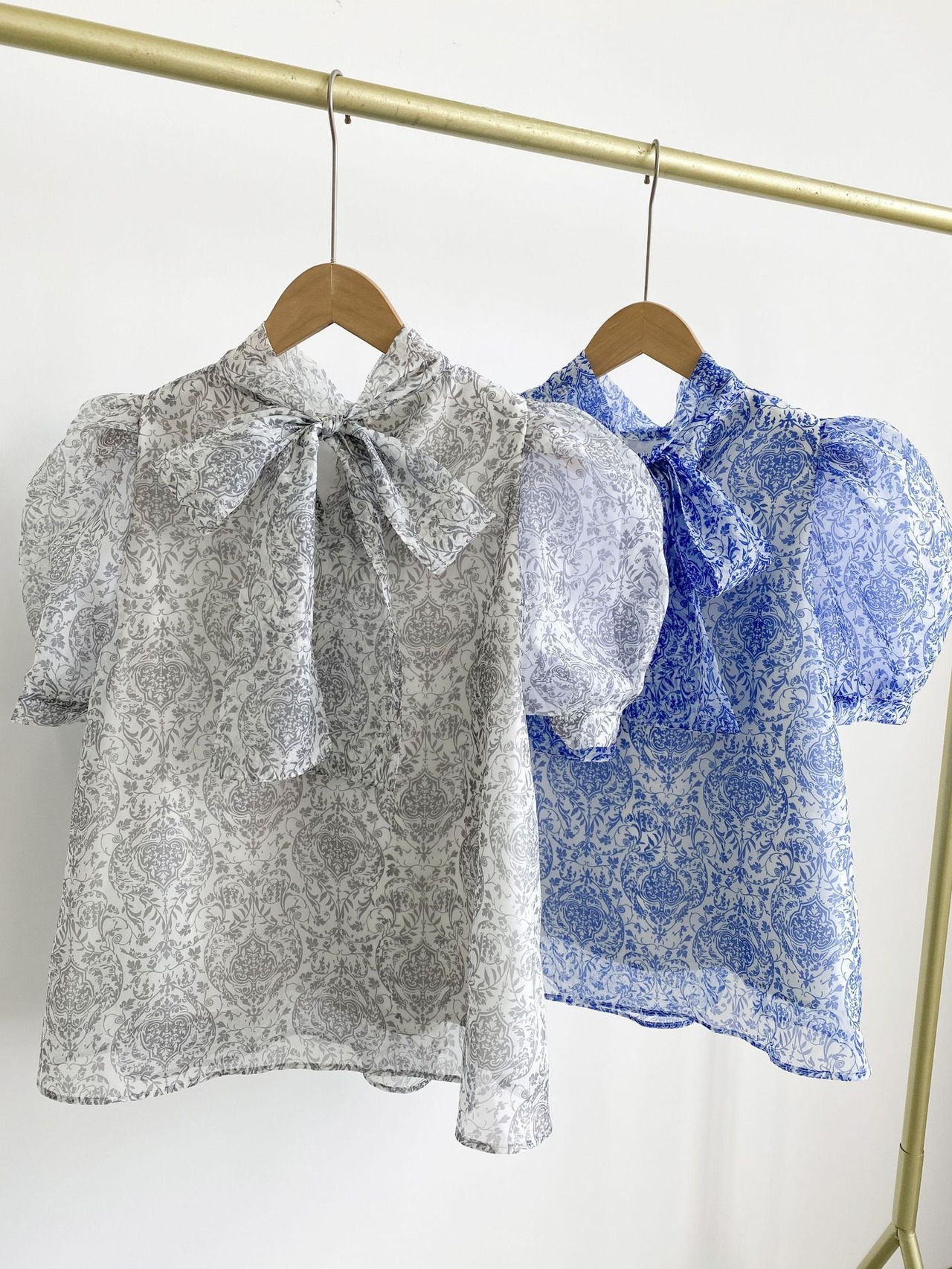 Nomikuma ブラウススタイル夏プリントデシックパフスリーブスタンドネックリボン包帯シフォントップス サマー 夏物
