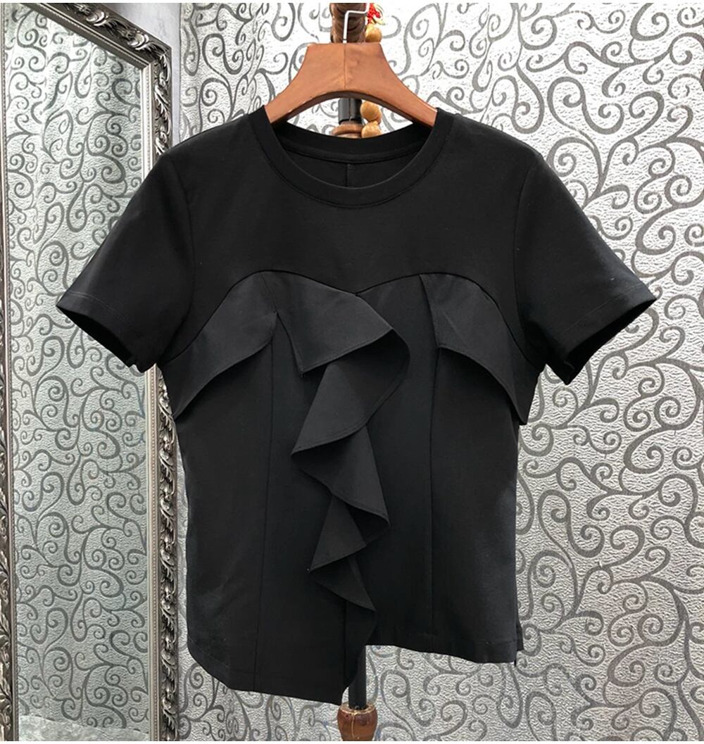 Nomikuma 不規則フリルパッチワーク半袖シャツ夏ヒットカラー O ネック Y2k トップグラフィック Tシャツ ショート ハーフスリーブ サマー 夏物 Oネック