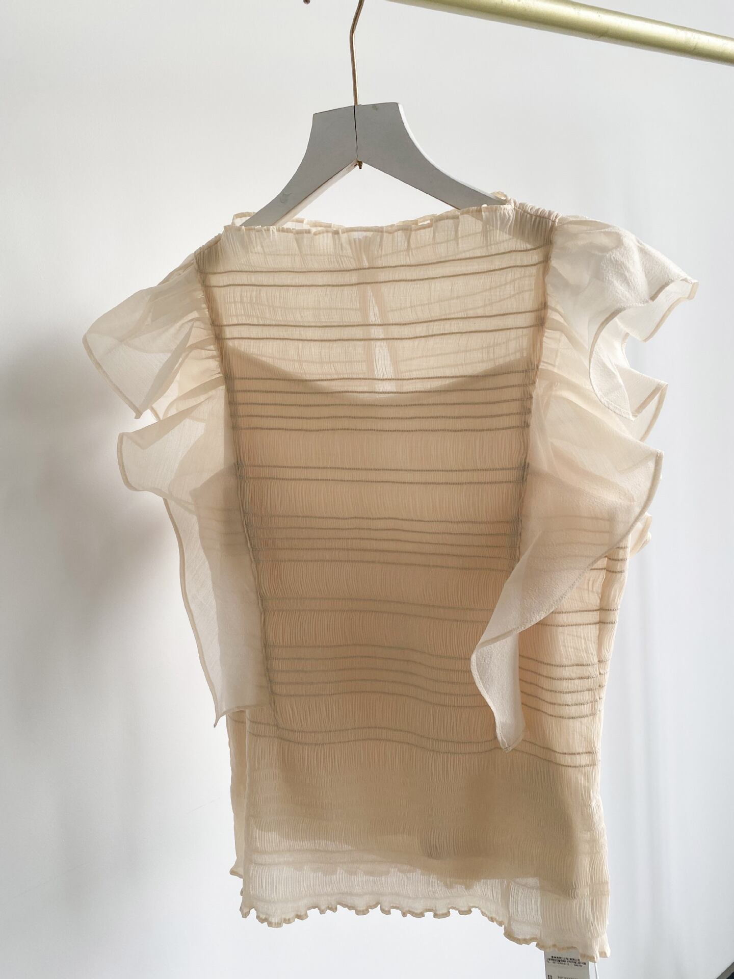 Nomikuma シックバタフライスリーブ O ネックシフォントップススタイルサマーブラウスシャツ甘いデ 大人ガーリー スウィート キュート カジュアル 夏物 Oネック