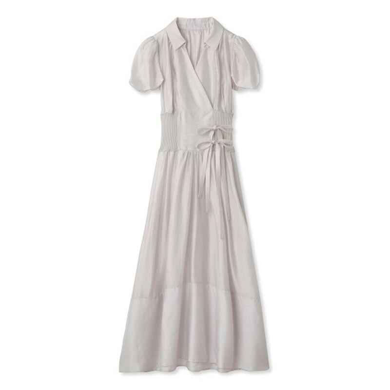 Nomikuma レースアップスリムウエストドレス夏パフスリーブターンダウンカラードレススタイル Y2k Vestidos サマー 夏物