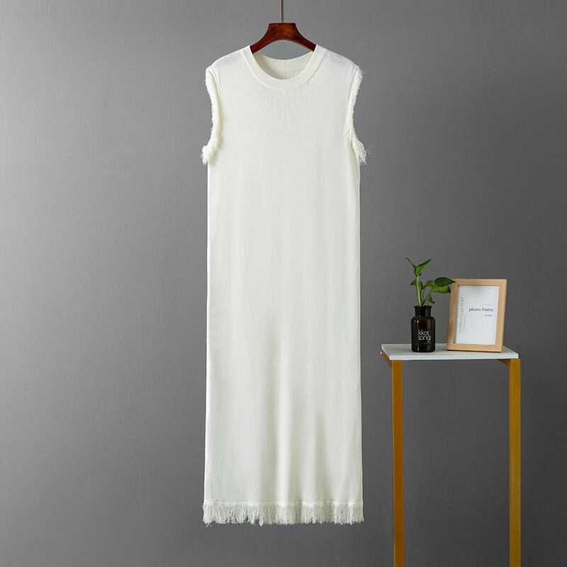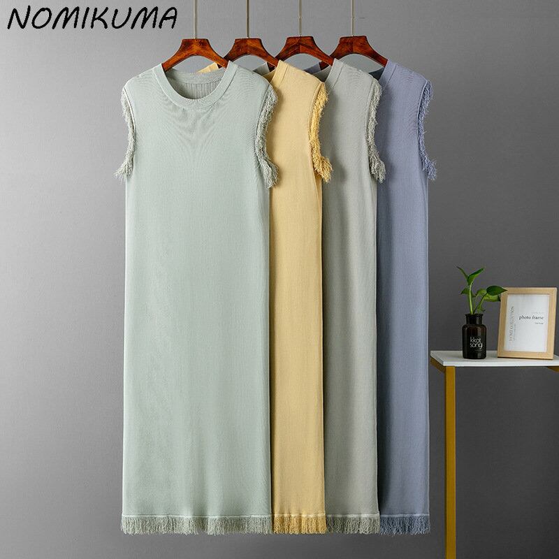 Nomikuma シックテルロングローブサマーノースリーブ O ネックタンクドレスカジュアルソリッドニット Vestidos 夏物 Oネック ソリッドカラー