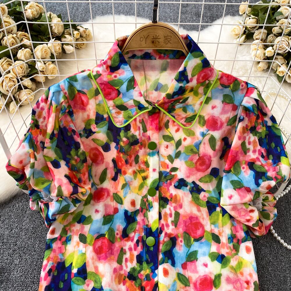 Nomikuma 夏パフスリーブターンダウンカラーシャツレインボーストライプ因果デ サマー 夏物