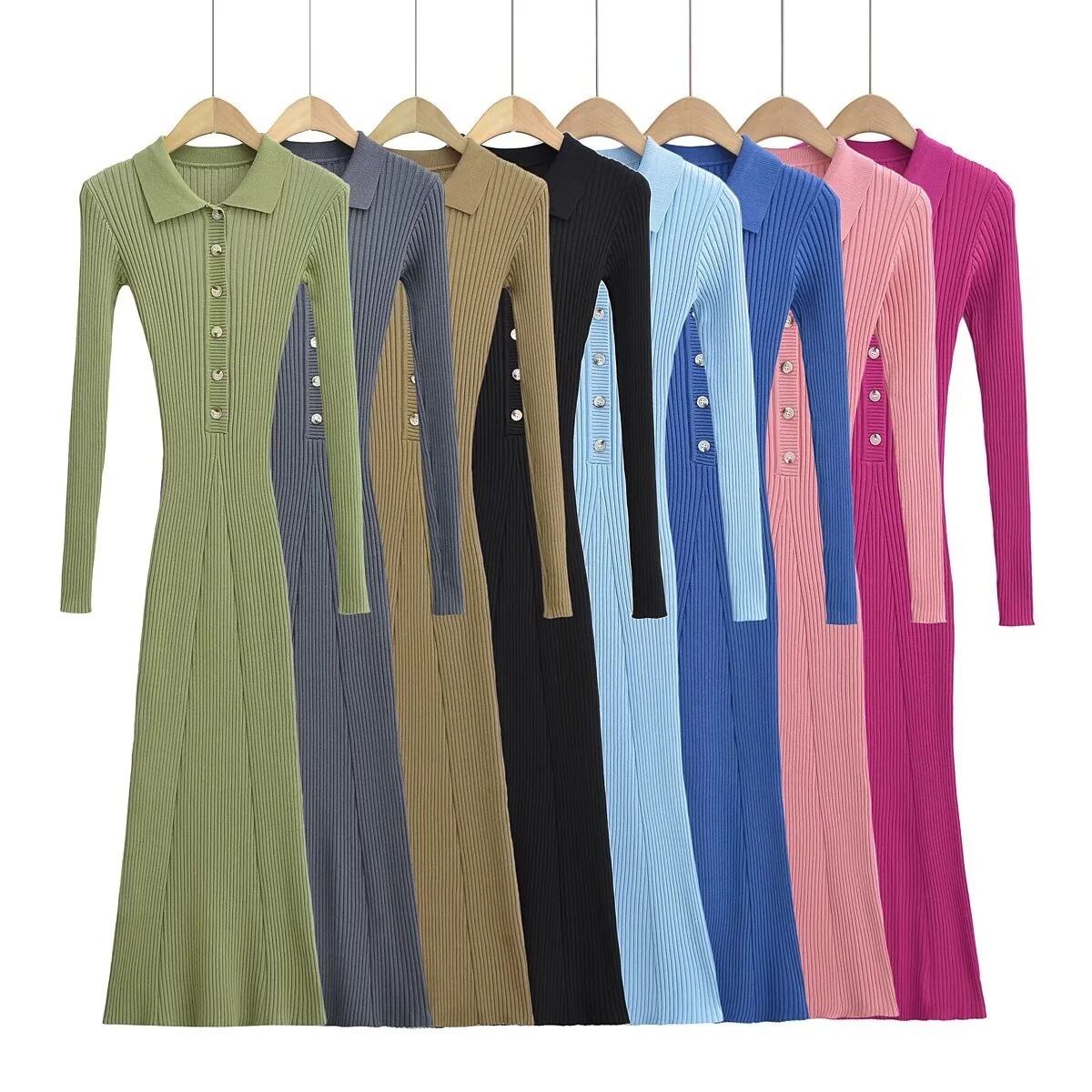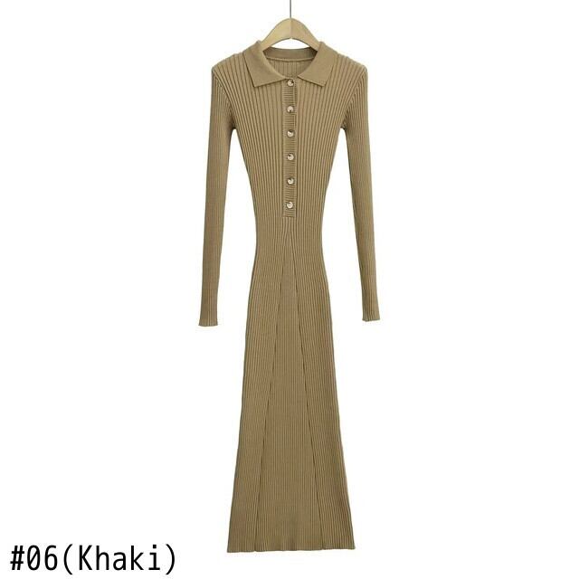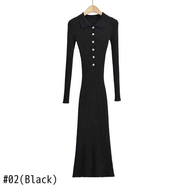 Nomikuma スパイシーガールターンダウン襟シングルブレストスリムセーターマーメイドドレス秋長袖ニットドレス ロング オータム 秋物