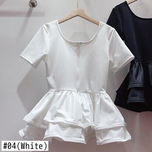Nomikuma 半袖夏スリムウエスト不規則フリルパッチワークトップスグラフィック Tシャツスイートシック Y2k トップ ショート ハーフスリーブ 大人ガーリー スウィート キュート カジュアル サマー 夏物