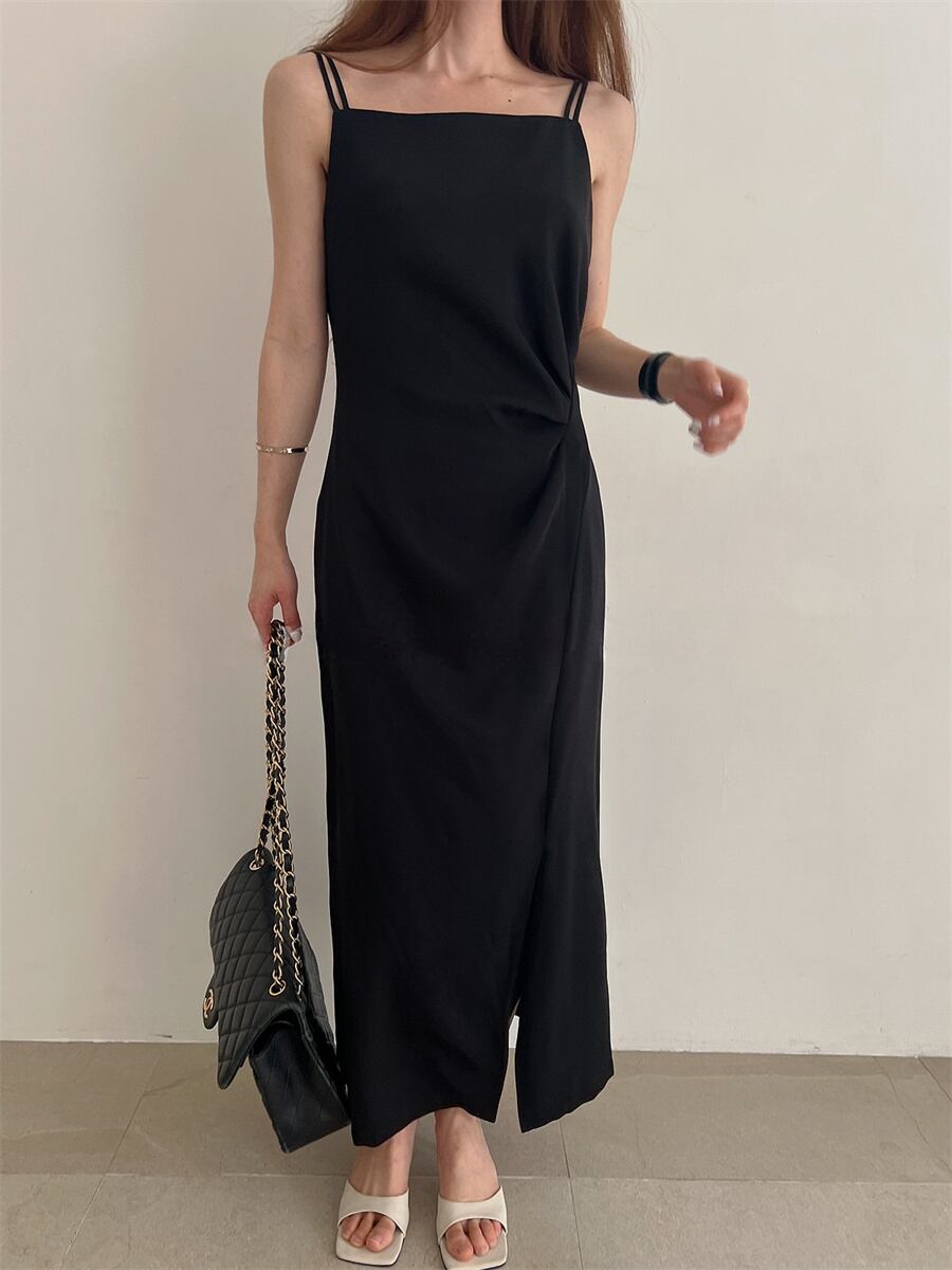 Nomikuma オフショルダー セクシー ストラップレス スパゲッティ ストラップ ドレス ひだ スリム ウエスト スプリット ロング ローブ Vestidos