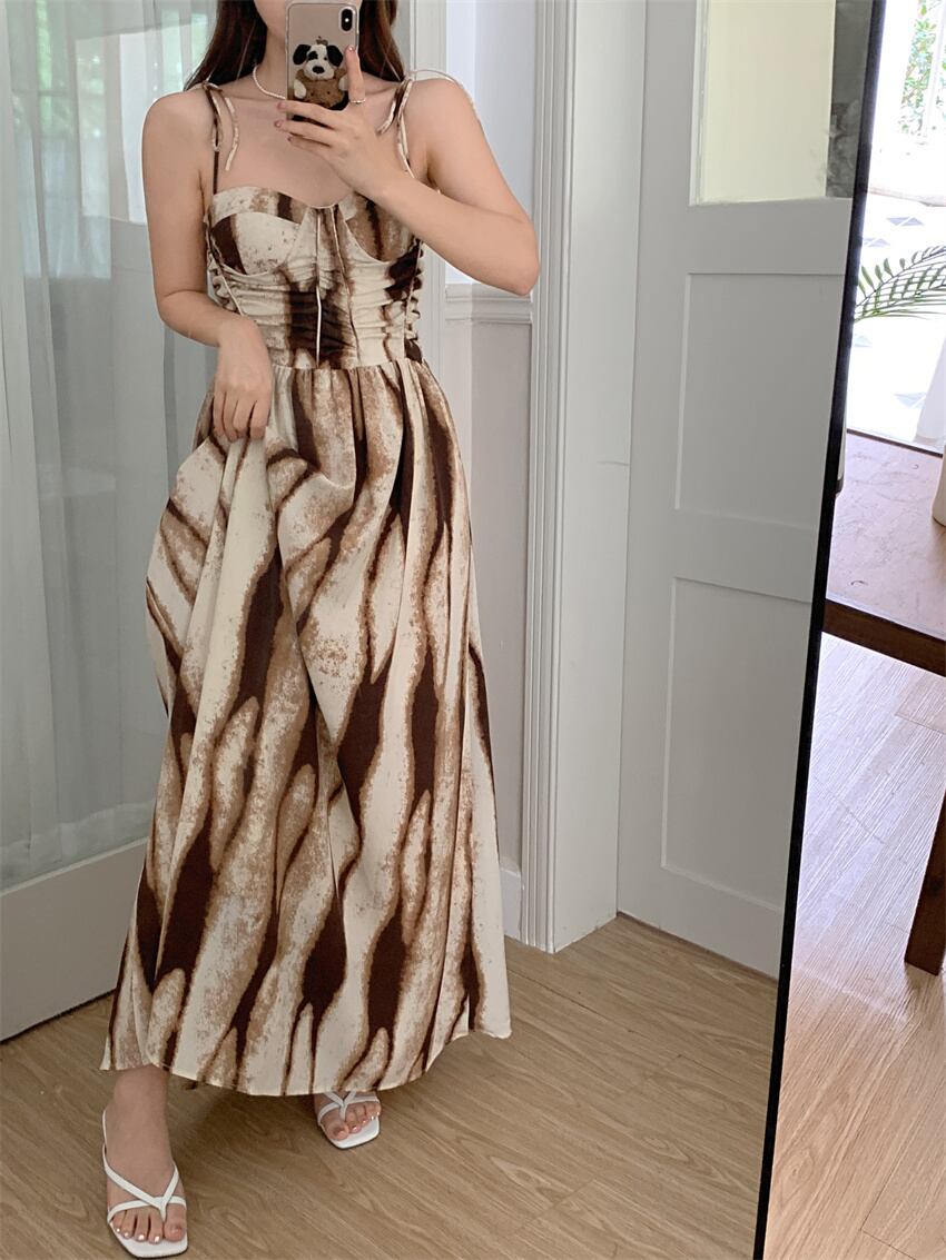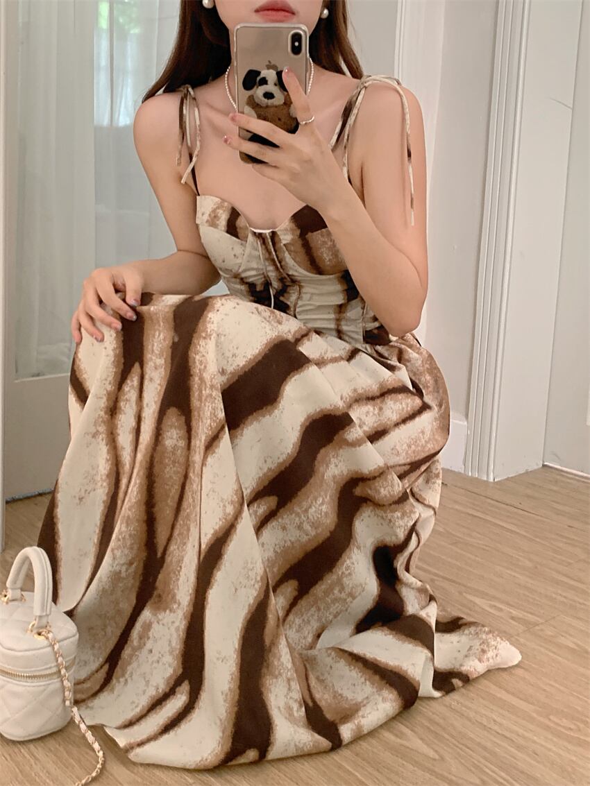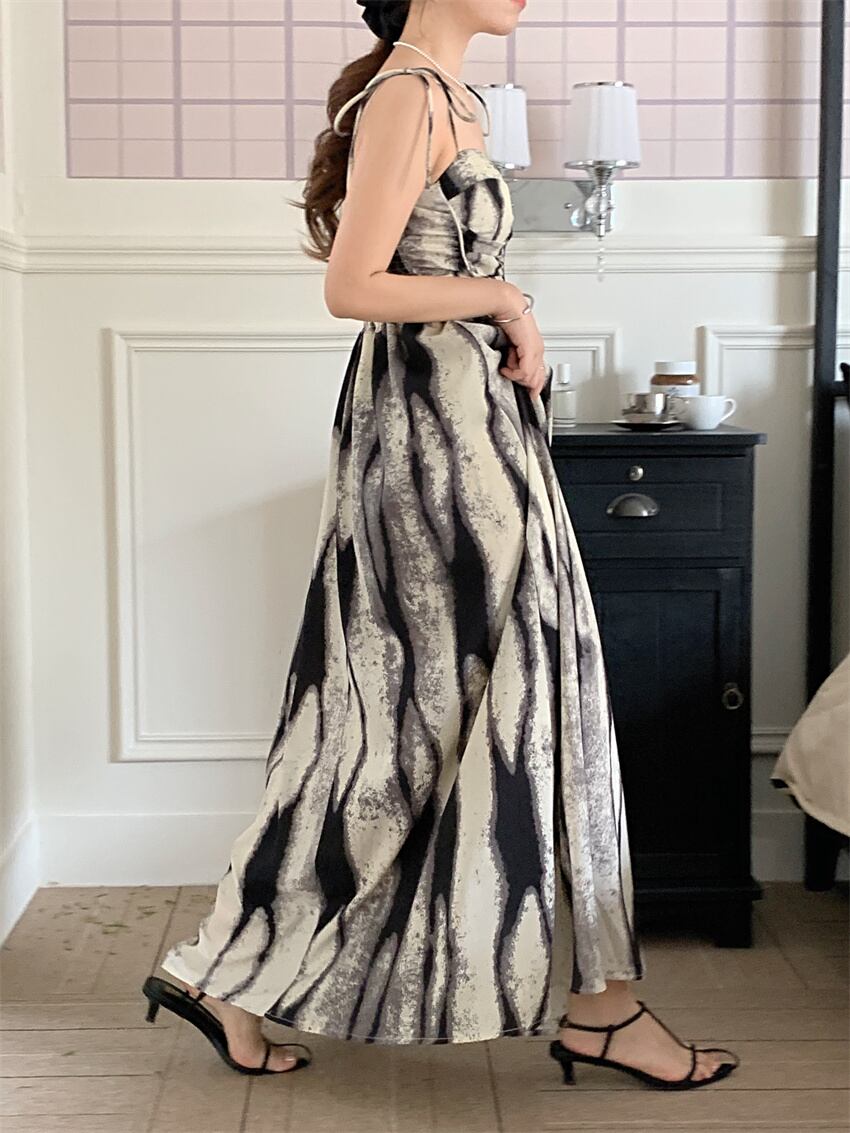 Nomikuma シック夏タイダイセクシードレス背中開いたスリムウエストストラップレススパゲッティストラップドレス サマー 夏物