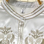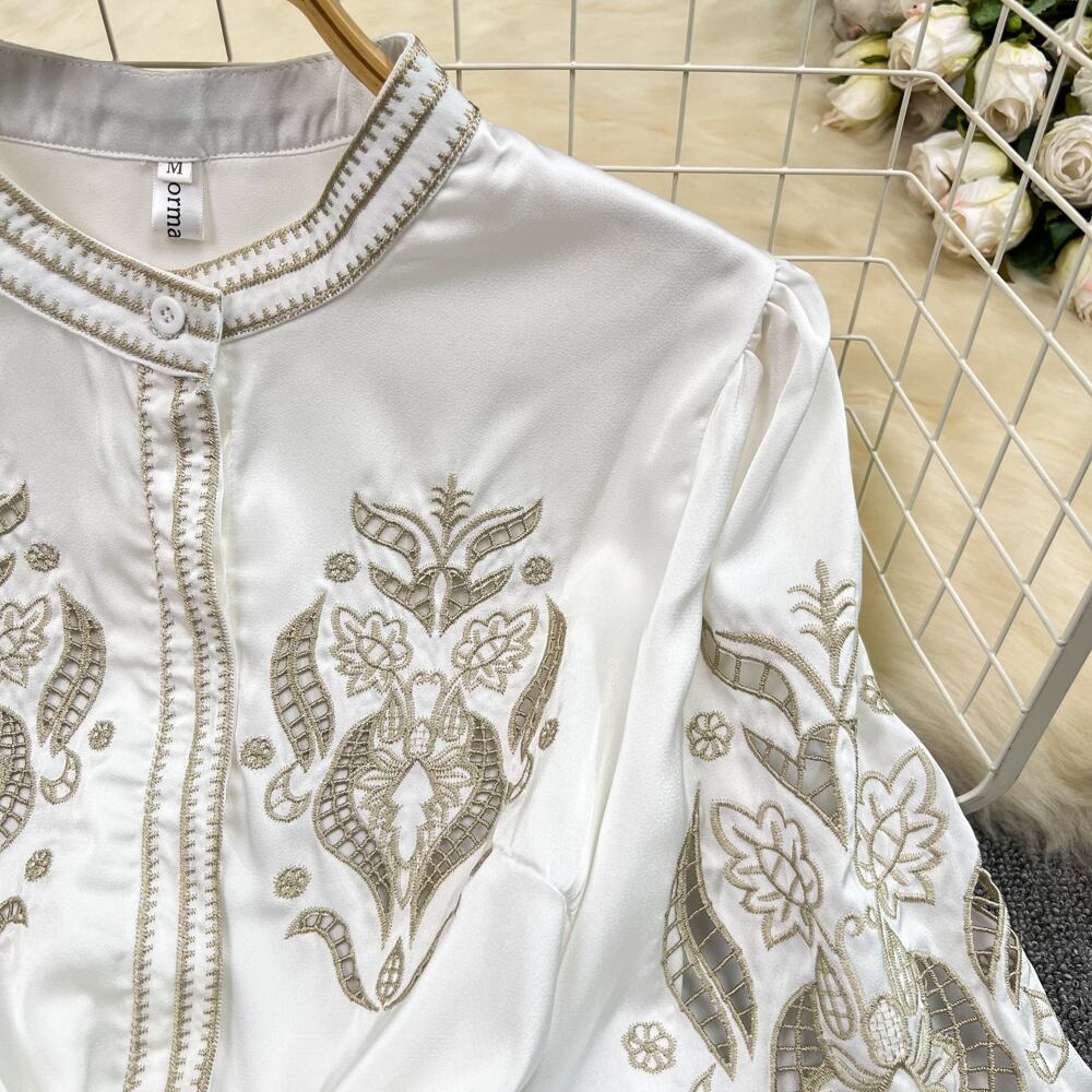 Nomikuma ランタンスリーブスタンドネックドレスシック刺繍スリムウエスト因果 A ラインドレス Aライン