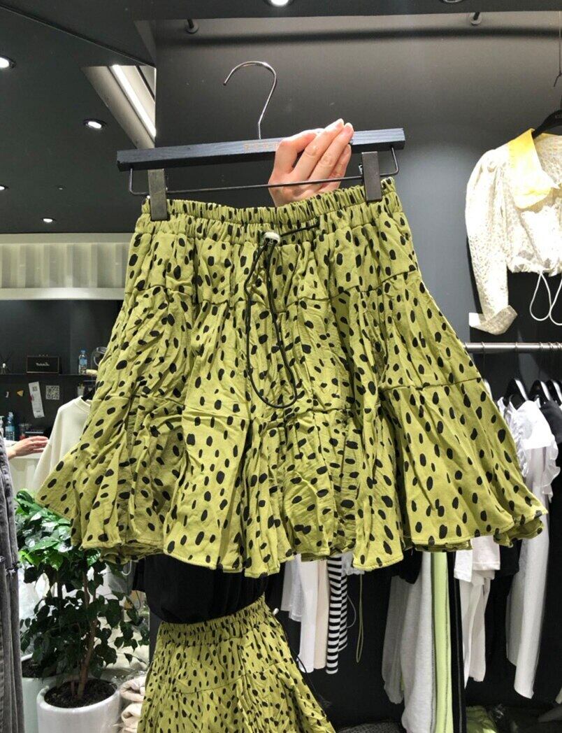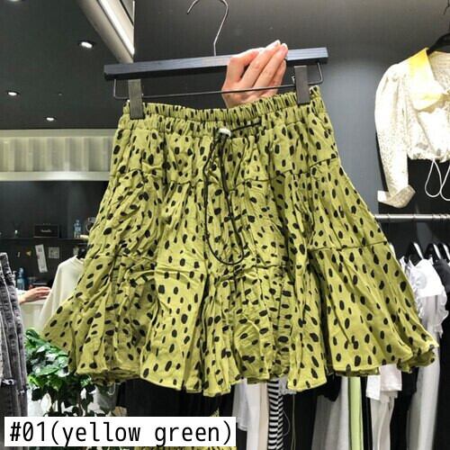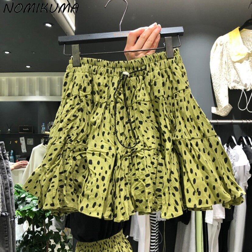 Nomikuma ドット甘い A ラインミニスカート夏ボトムス因果巾着 Elasti チャイウエストスカート Fladas ハイウェスト 大人ガーリー スウィート キュート カジュアル サマー 夏物 Aライン