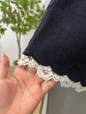 Nomikuma レースヒットカラーパッチワークウエストデミンショーツ夏因果ワイドレッグジーンズショート サマー 夏物 ブルマー ワイドパンツ
