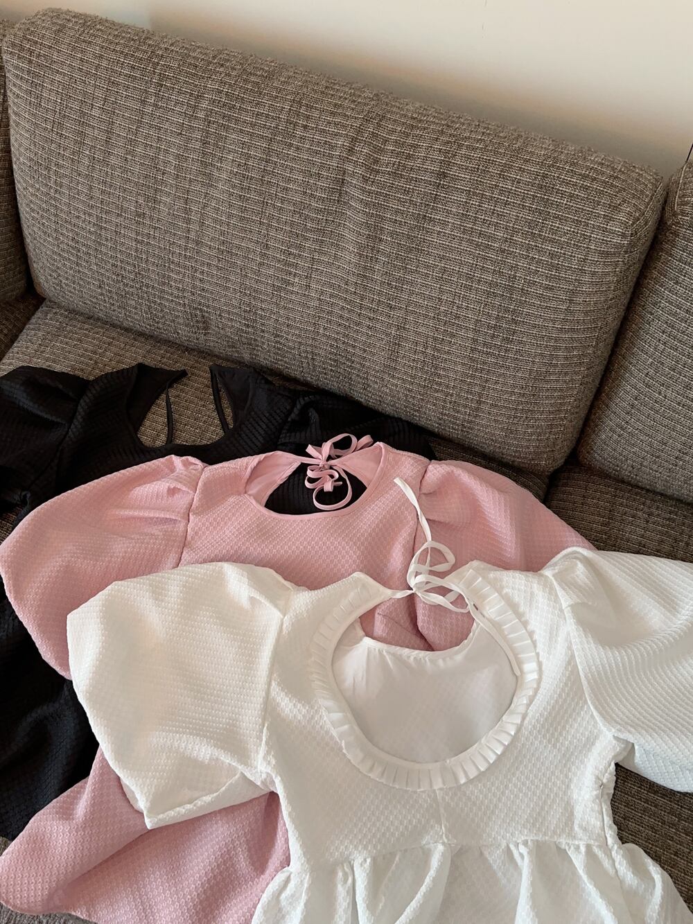 Nomikuma セクシーレースアップバック中空ブラウストップス甘いパフスリーブ O ネックドールシャツ Sumemr De 大人ガーリー スウィート キュート カジュアル Oネック