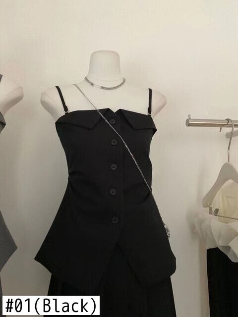Nomikuma ツーピースセットレディース衣装シングルブレストスリムスリングベスト + ウエスト A ラインミニスカート夏セット サマー 夏物 Aライン