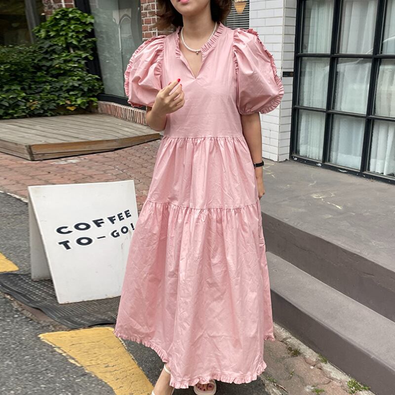 Nomikuma シックパフスリーブ V ネックドレスシックウエストカジュアル A ライン Vestidos サマードレス 夏物 Vネック Aライン