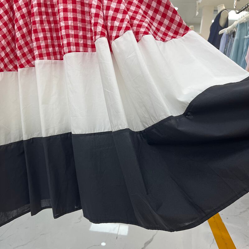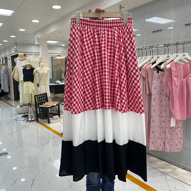 Nomikuma ブラックホワイトパッチワークチェック柄 Y2k スカート弾性ウエストカジュアル A ラインゴススカート Faldas デ エラスティック 伸縮 Aライン