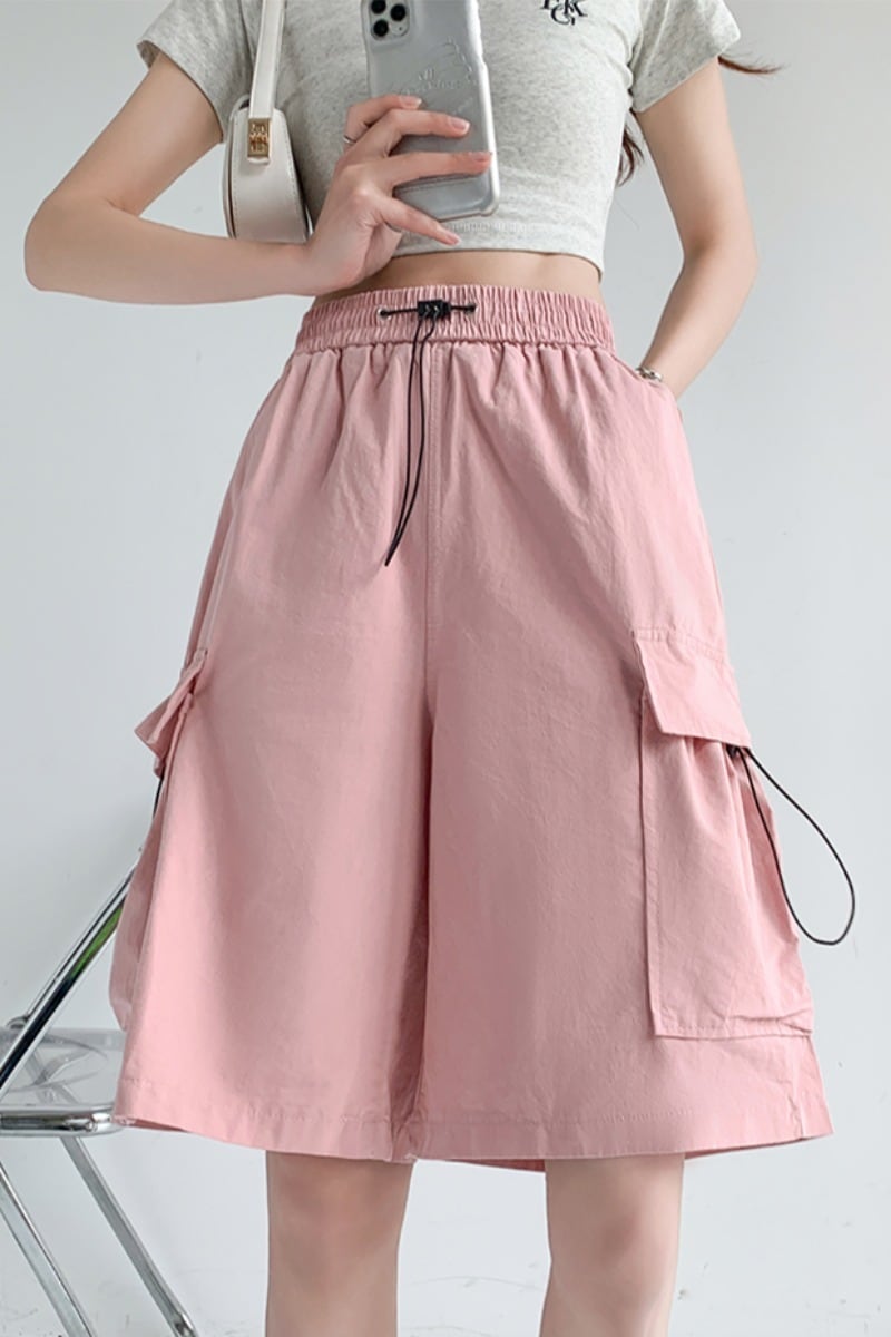 Nomikuma 巾着サファリスタイルカーゴショーツ夏弾性ウエスト因果ハーフショート Feminimos ボトムス エラスティック 伸縮 サマー 夏物 ブルマー