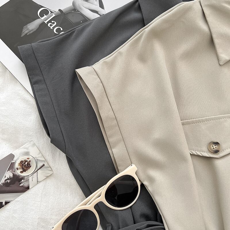 Nomikuma ターンダウン襟シングルブレスト包帯スリムウエストサファリスタイルジャンプスーツ夏半袖ワイドレッグロンパース ショート ハーフスリーブ サマー 夏物 ワイドパンツ