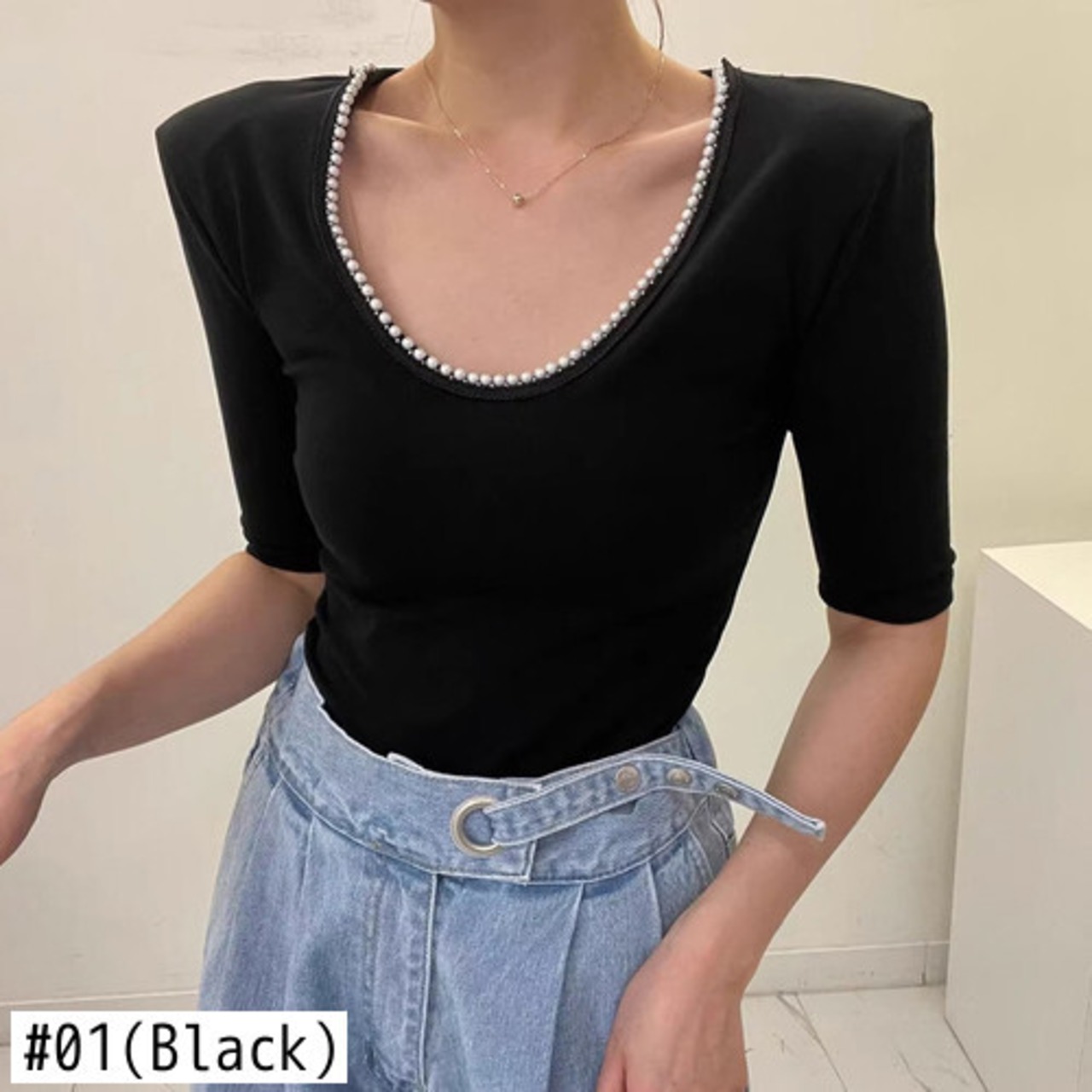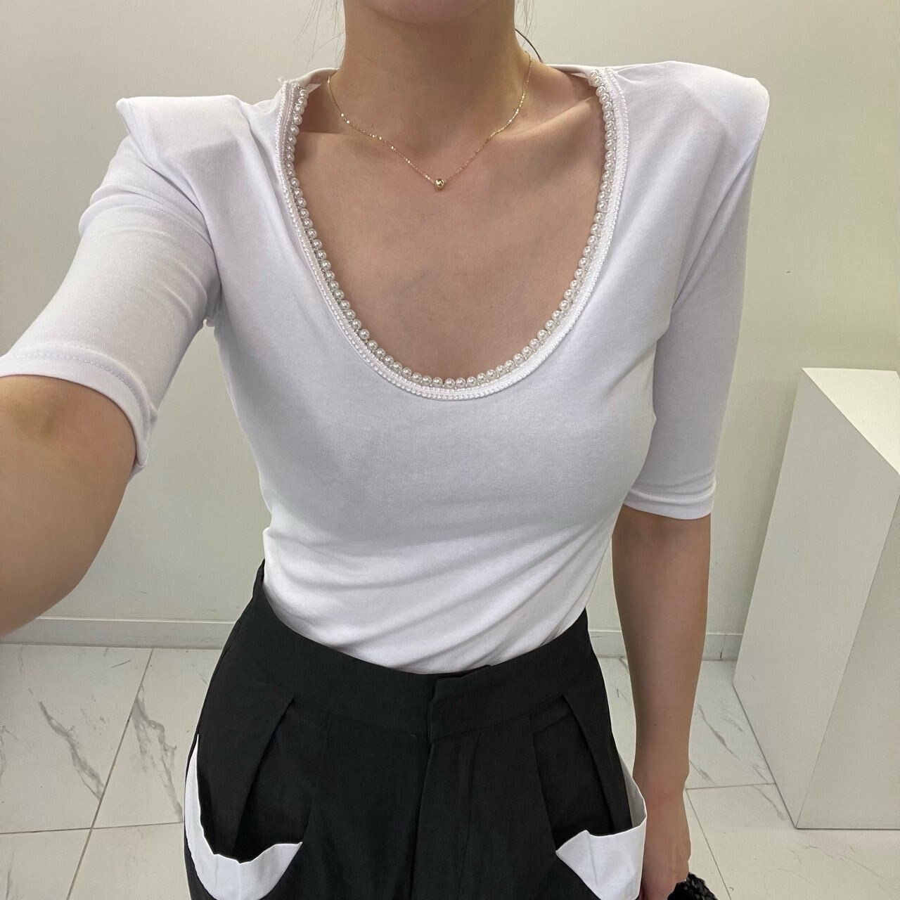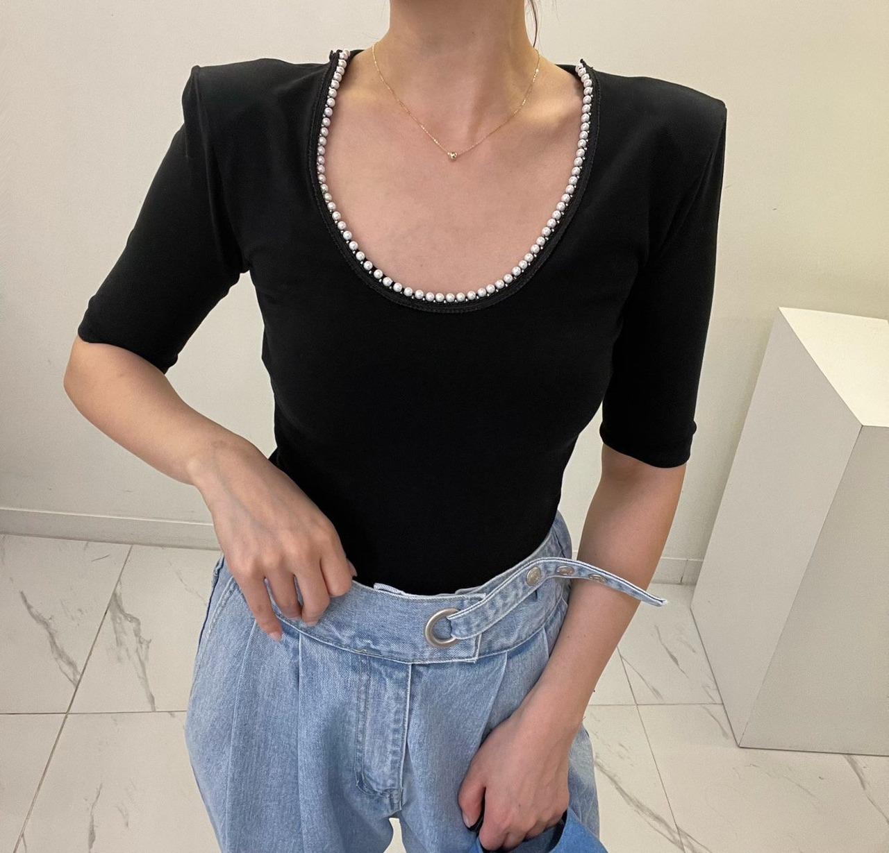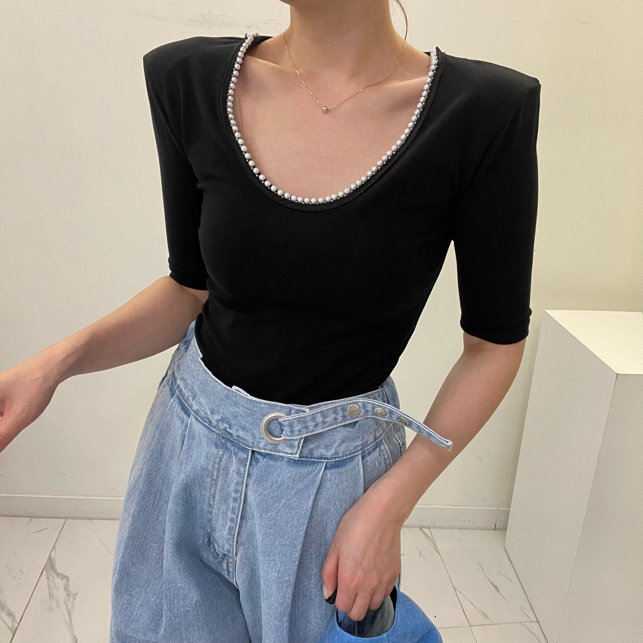 Nomikuma ビーズ O ネックスリムグラフィック Tシャツ弾性ゴシック Y2k トップ Sumemr ボトリングシャツ エラスティック 伸縮 Oネック ソリッドカラー