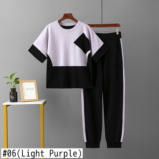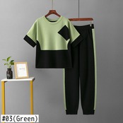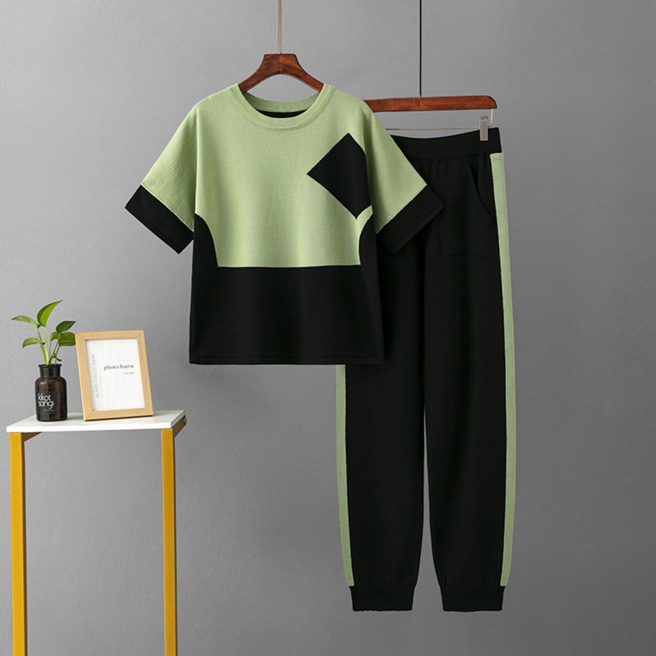 Nomikuma 因果セット夏コントラストカラー半袖 O ネック Tシャツトップス + ウエストハーレムロングパンツ ショート ハーフスリーブ サマー 夏物 Oネック