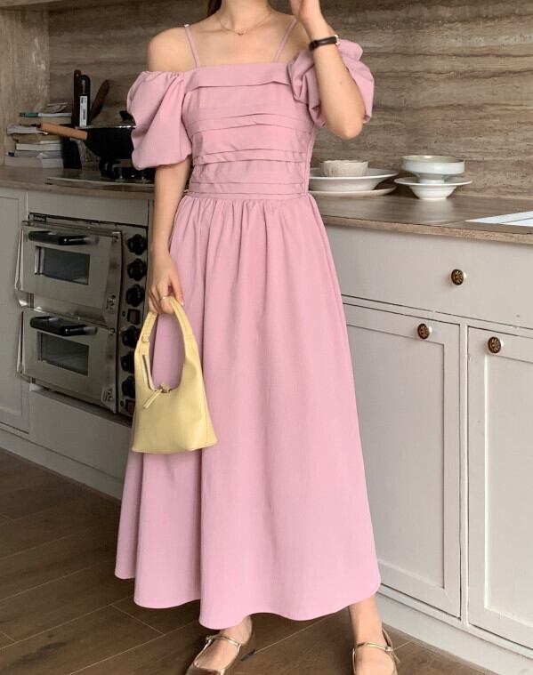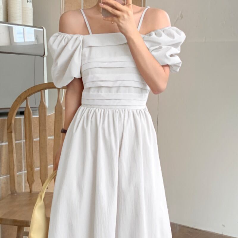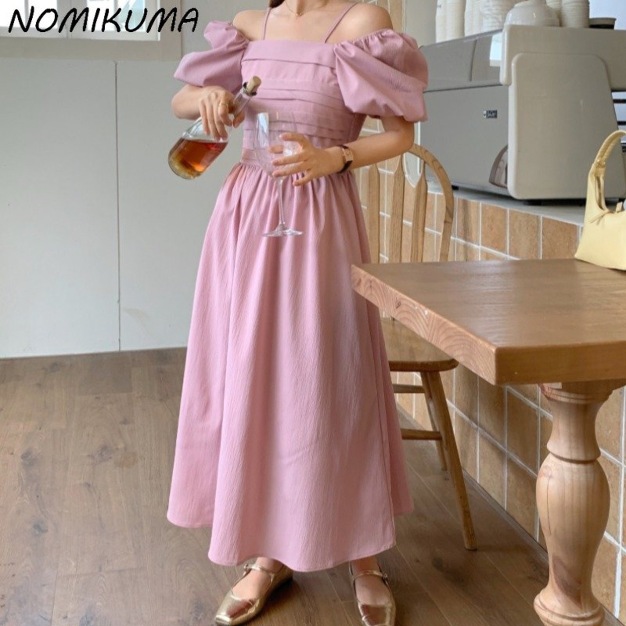 Nomikuma オフショルダースリングドレスシックパフスリーブウエスト因果 A ライン Vestidos 夏甘いドレス 大人ガーリー スウィート キュート カジュアル サマー 夏物 Aライン