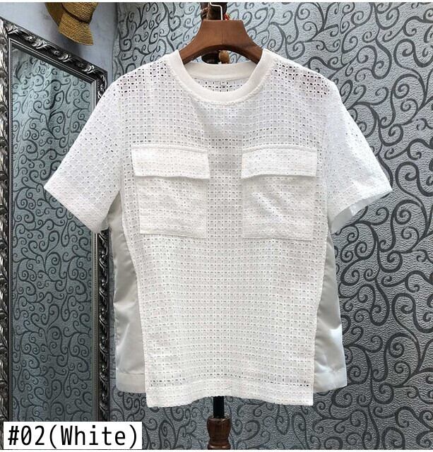 Nomikuma ダブルポケット中空パッチワークヒットカラー半袖トップスサマーシャツ ショート ハーフスリーブ 夏物
