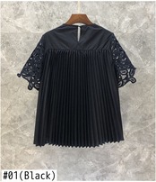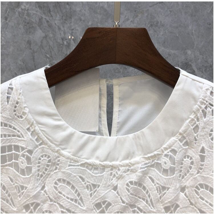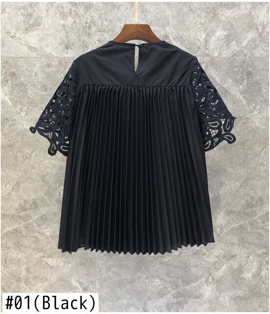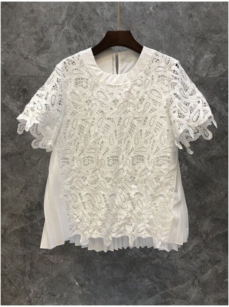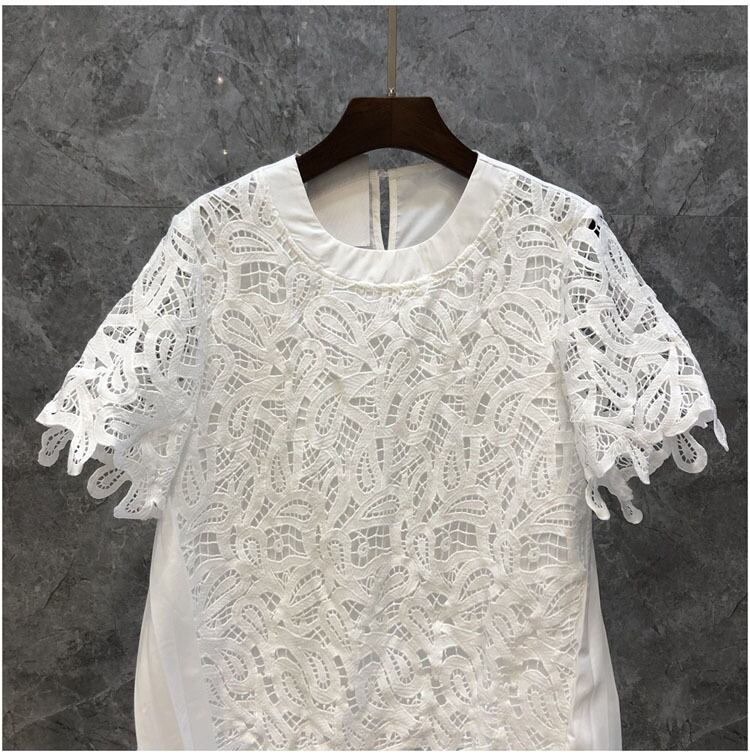 Nomikuma 夏レース中空アウトパッチワークシャツ因果半袖 O ネックグラフィック T シャツ ショート ハーフスリーブ サマー 夏物 Oネック Tシャツ