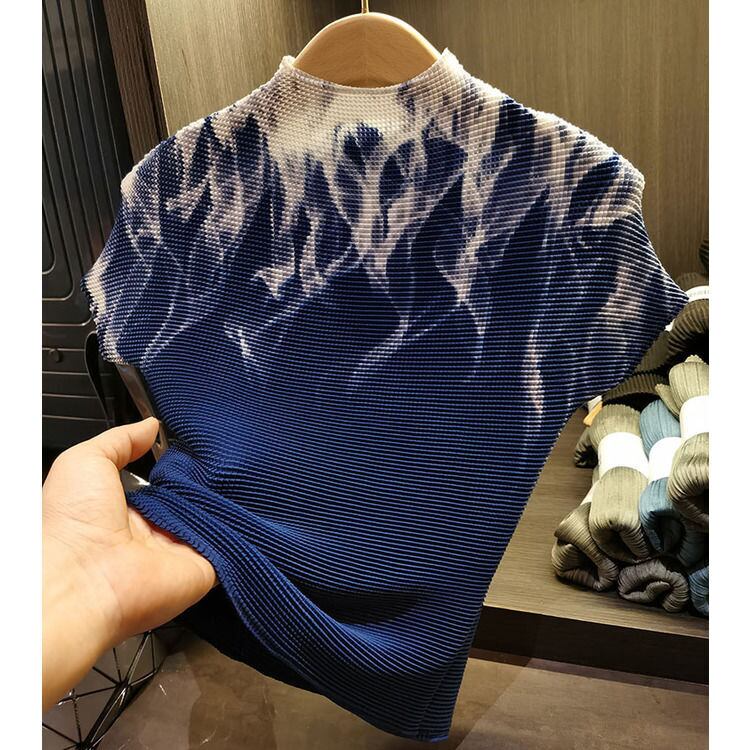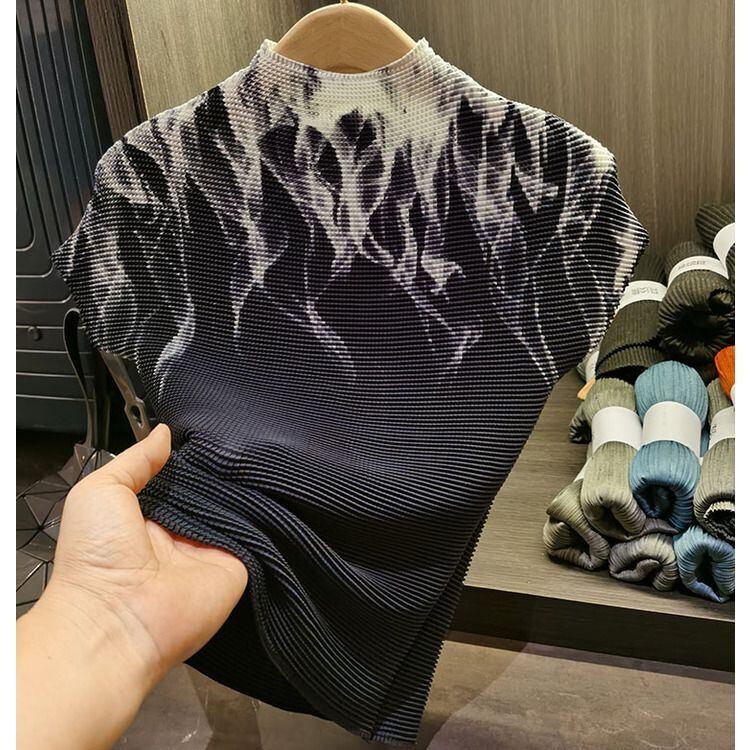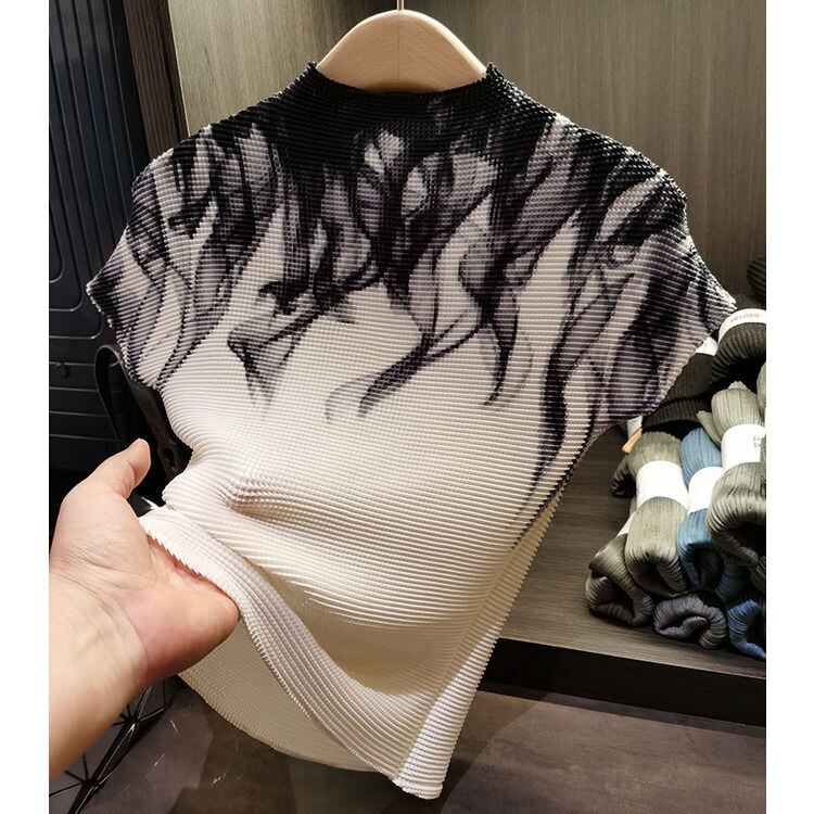 Nomikuma スタンドネック半袖印刷 Y2k トップシャツ夏スリムひだグラフィック T シャツ ショート ハーフスリーブ サマー 夏物 Tシャツ