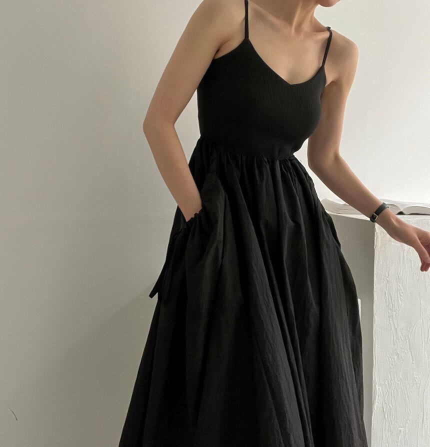 Nomikuma ノースリーブ ロングドレス サマー ウエスト ドレス 巾着 ポケット A ライン Vestidos 夏物 Aライン