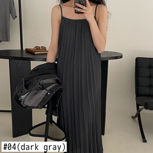 Nomikuma プリーツスパゲッティストラップドレスカジュアルノースリーブロングローブサマードレス 夏物