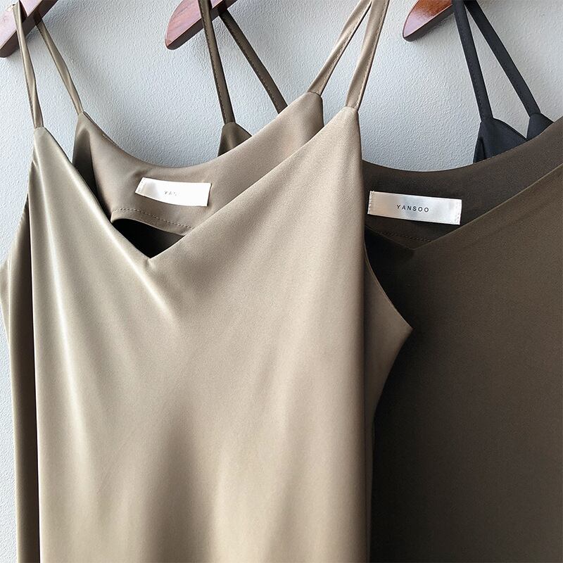 Nomikuma サテンスパゲッティストラップドレス V ネック Sleevekess ドレスソリッドスリング Vestidos Vネック ソリッドカラー