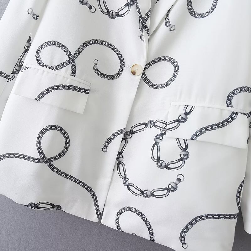 Nomikuma 春夏チェーンプリント Turn-doan 襟ブレザー因果トップステーラードコート レッド スプリング 春物 サマー 夏物