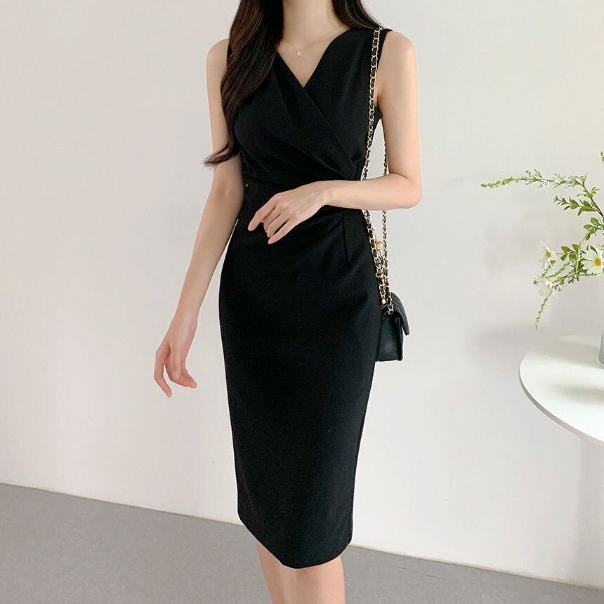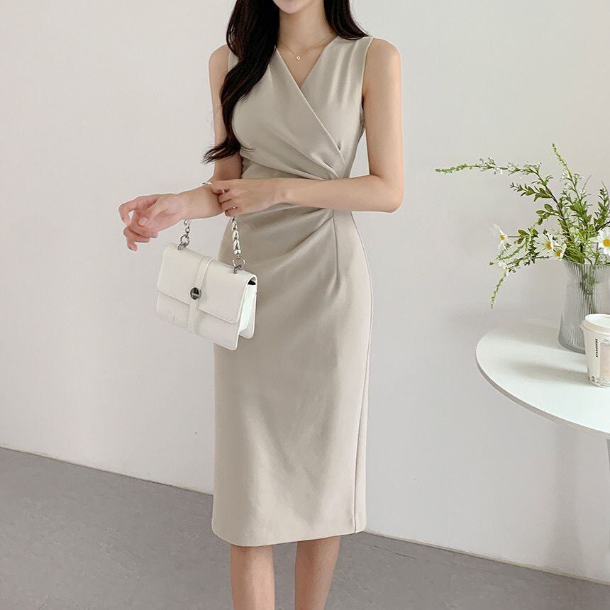 Nomikuma ノースリーブ V ネックドレス夏スリムウエストドレス Vestidos Feminimos サマー 夏物 Vネック ソリッドカラー