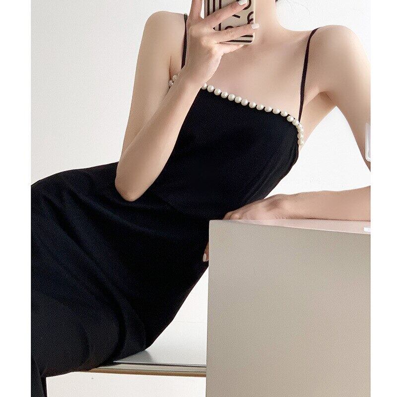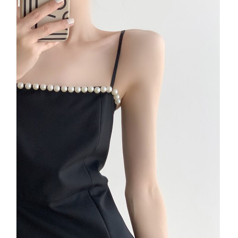 Nomikuma シックビーズオフショルダースパゲッティストラップドレススリムウエスト黒人ドレス夏 Vestidos ブラック サマー 夏物