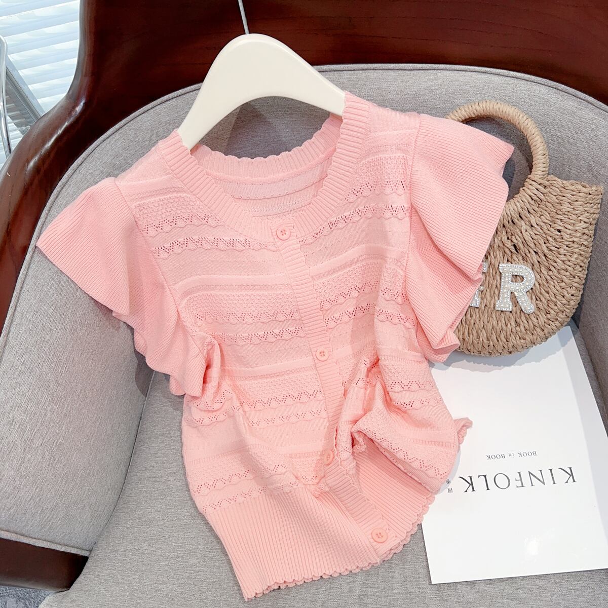 Nomikuma 中空アイス ニット カーディガン 夏 薄手 フライング スリーブ シングルブレスト O ネック ニット コート サマー 夏物 Oネック シルク