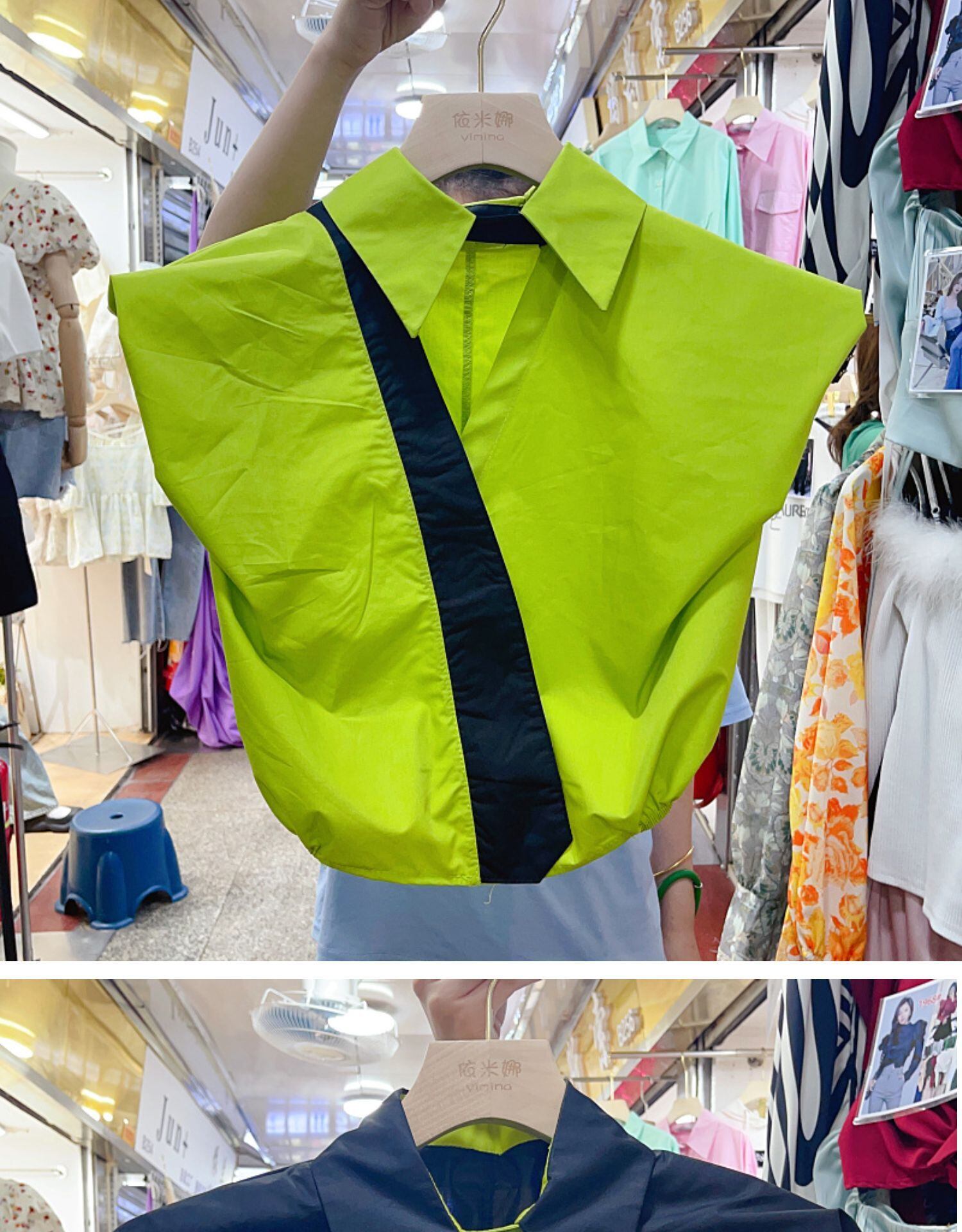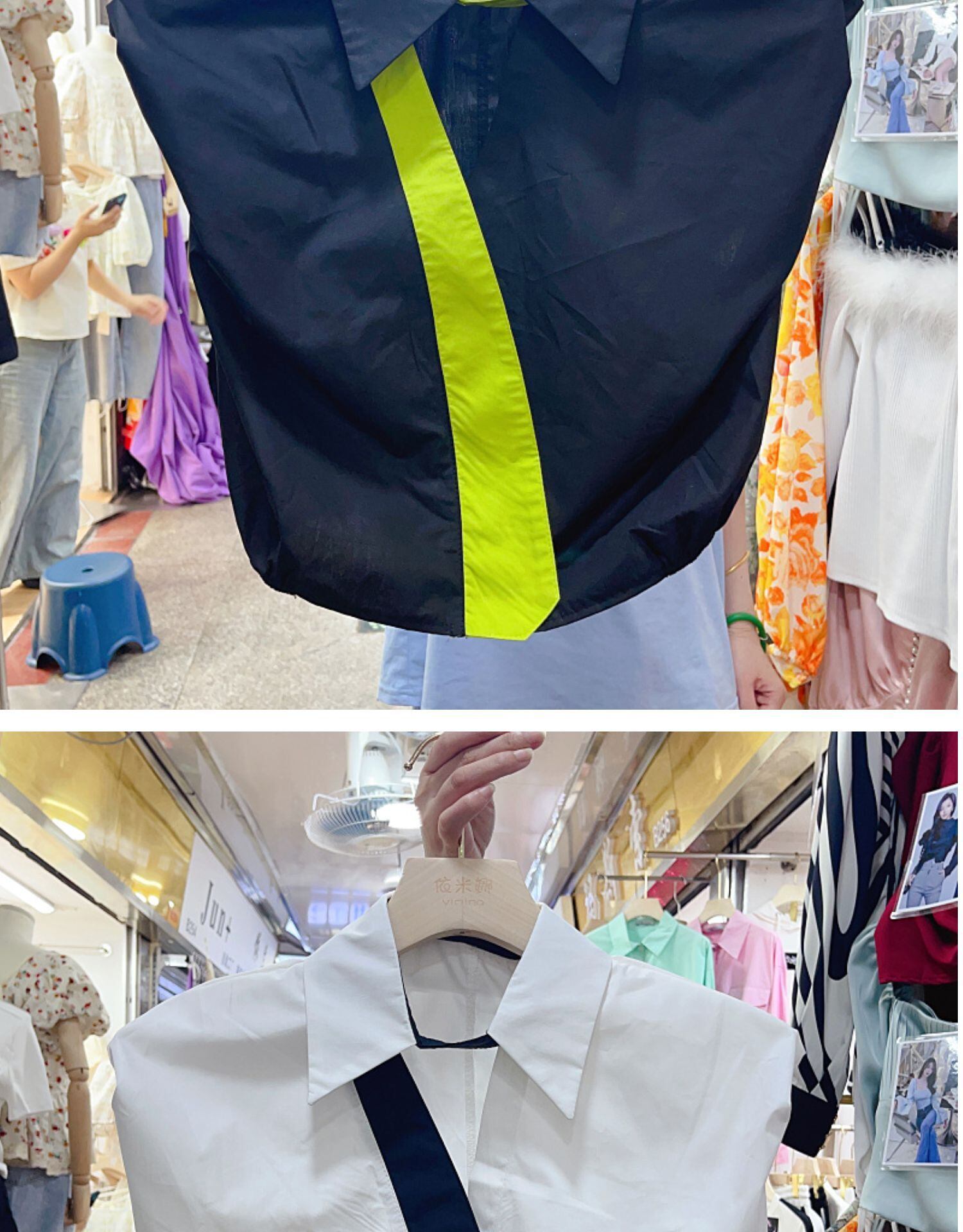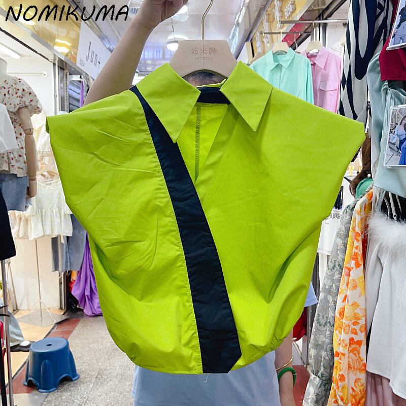 Nomikuma 夏ターンダウン襟ヒットカラートップスリムウエストショートブラウス因果ターンダウン襟シャツ サマー 夏物