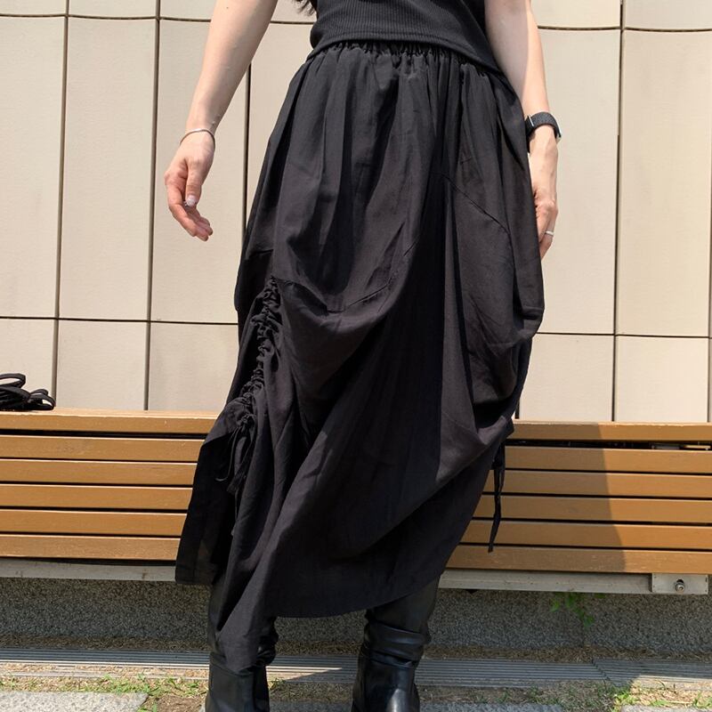 Nomikuma ソリッド巾着不規則因果 A ラインスカートレディース Vinatge ウエストロングスカート段ファルダモーダボトムス Aライン ソリッドカラー