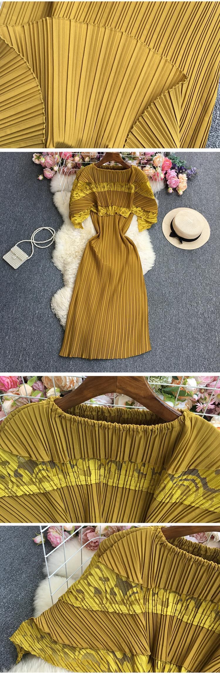 Nomikuma シックレースパッチワークプリーツドレス半袖 O ネックドレス夏 Vestidos ショート ハーフスリーブ サマー 夏物 Oネック
