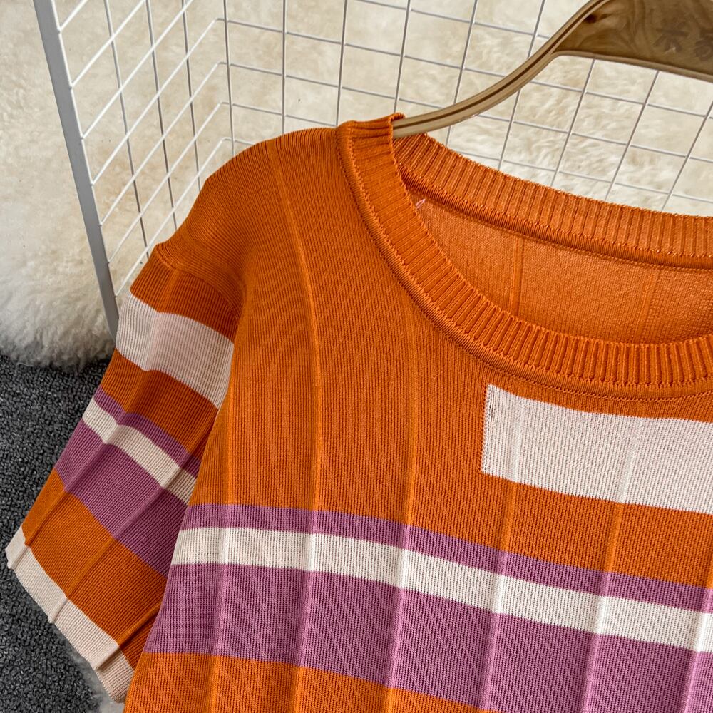 Nomikuma 夏シック半袖 O ネックコントラストカラー因果 A ラインアイスニットドレス因果ロングローブ ショート ハーフスリーブ サマー 夏物 Oネック Aライン シルク