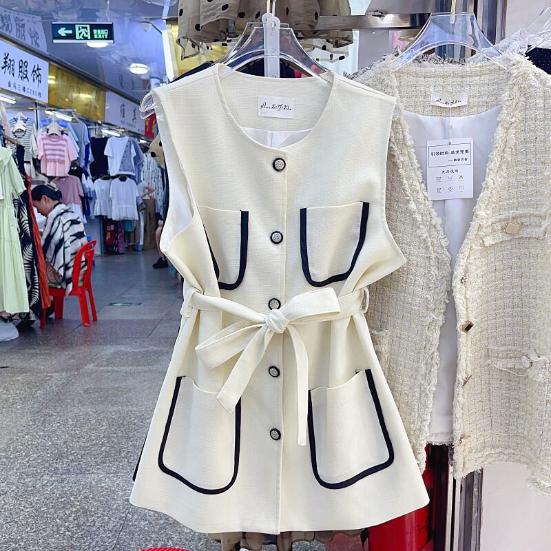 Nomikuma ベルトスリムウエストチョッキ中ロング夏因果ベストジャケット生き抜くトップス サマー 夏物 ハーネス