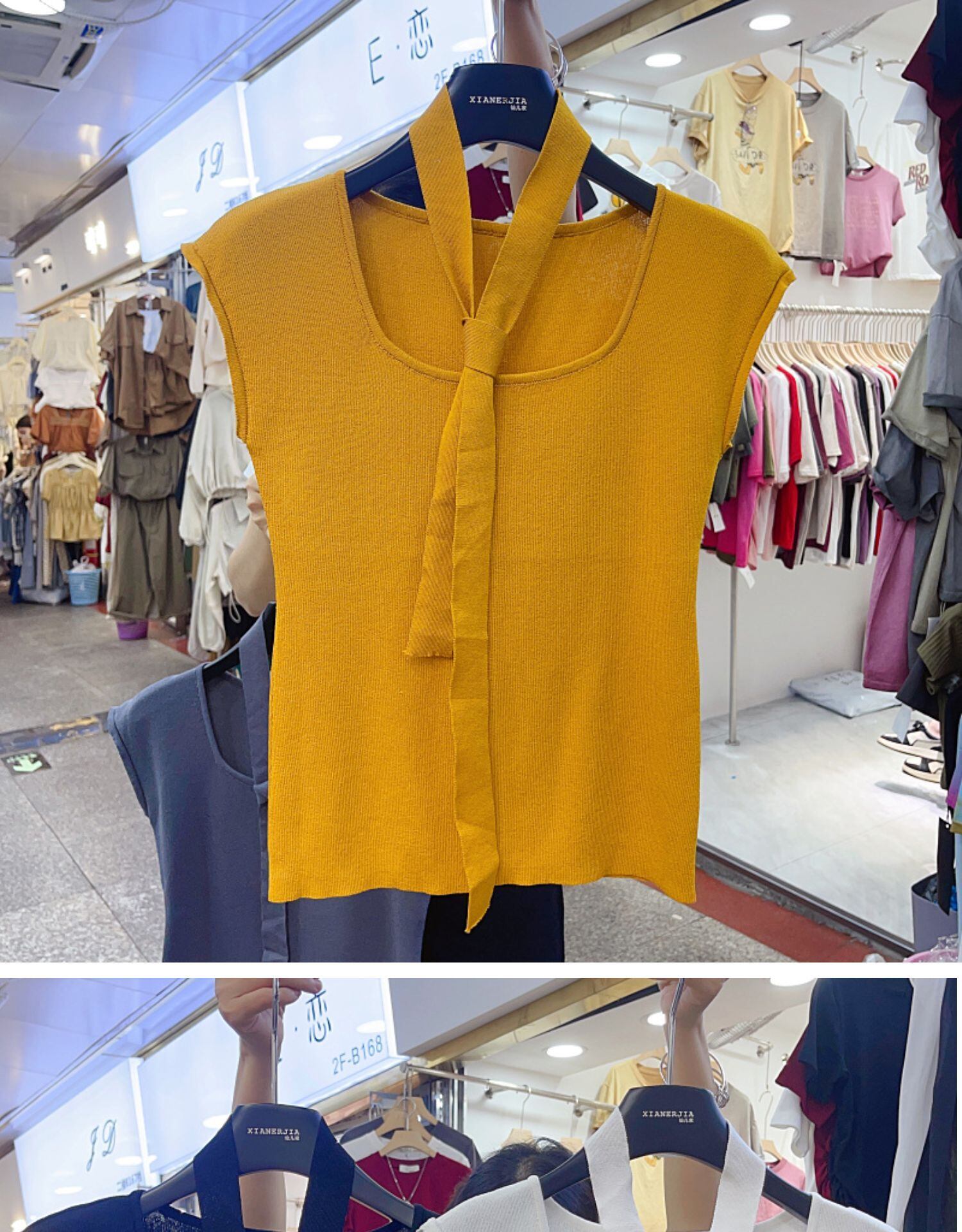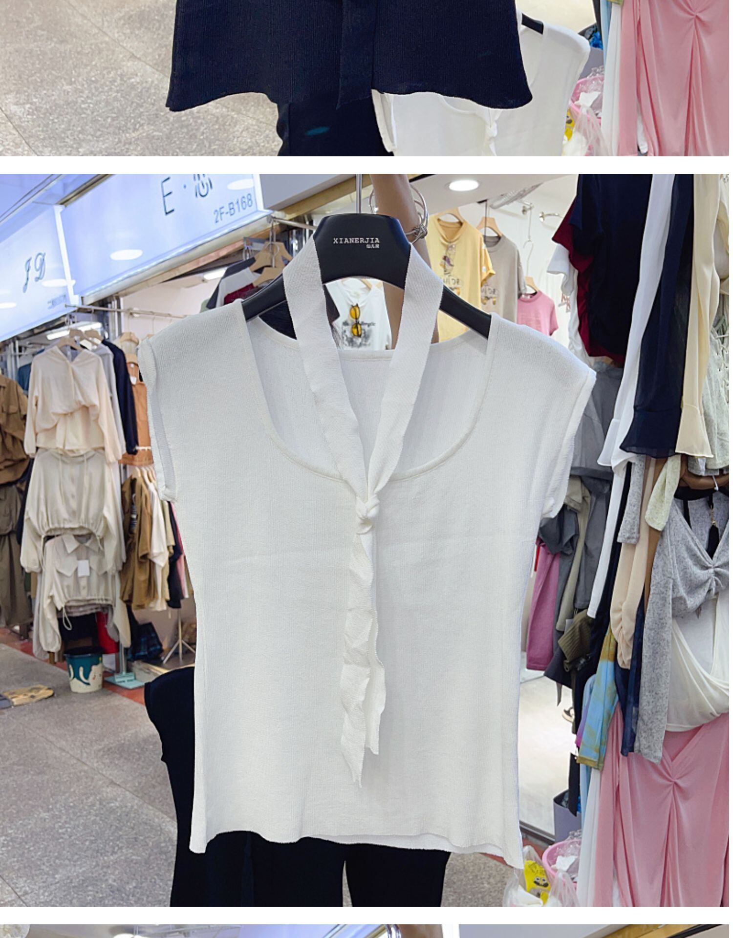 Nomikuma 夏ネクタイスクエアカラースリムノースリーブニットトップスソリッドグラフィック Tシャツ サマー 夏物 ソリッドカラー スクウェア