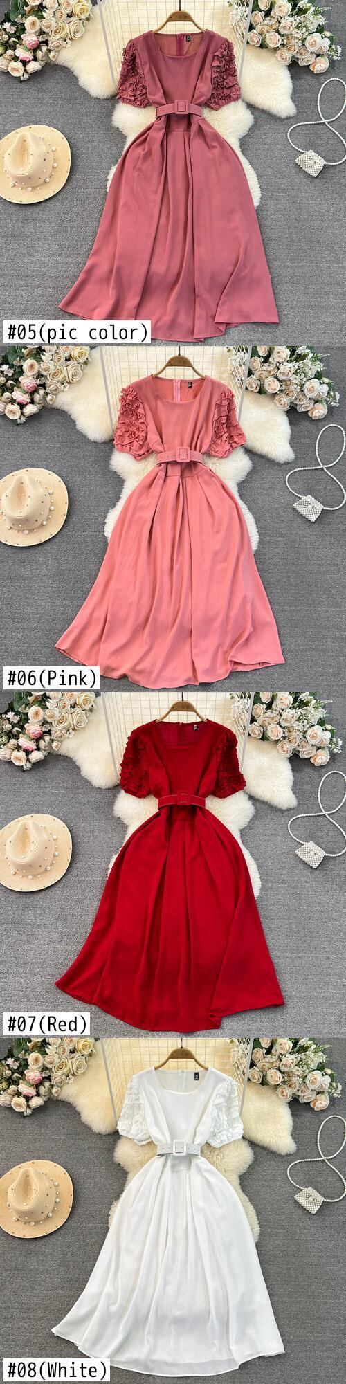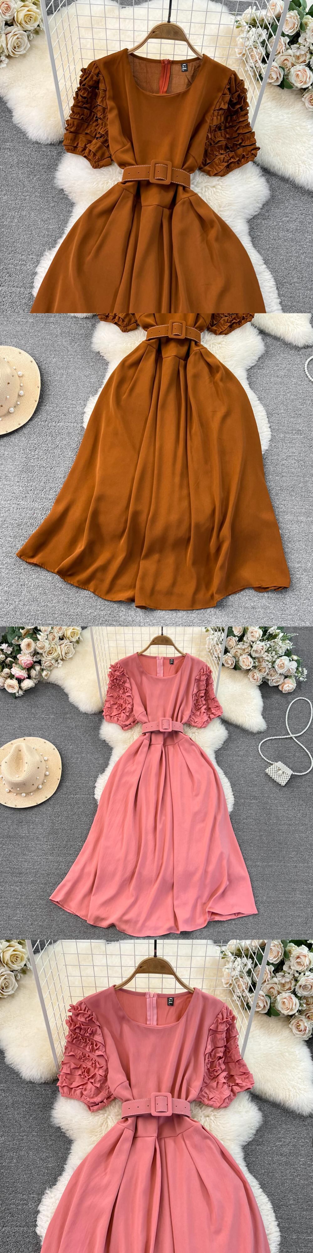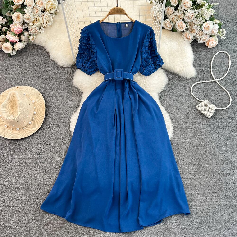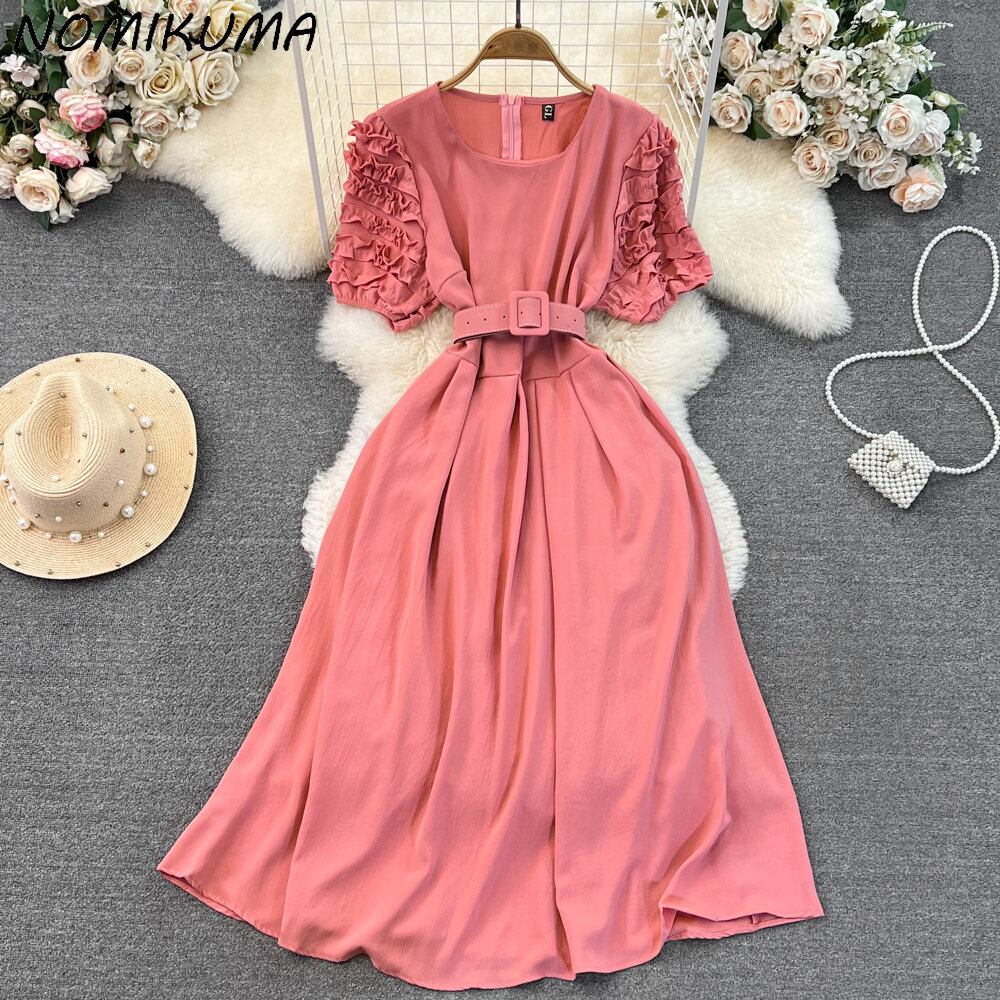 Nomikuma ロングドレス夏半袖 O ネックドレスベルトスリムウエスト A ライン Vestidos ショート ハーフスリーブ サマー 夏物 ハーネス Oネック Aライン