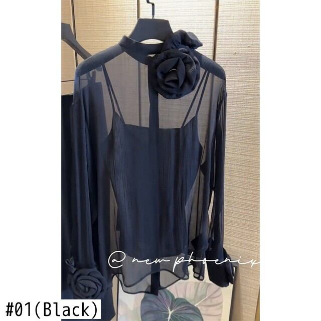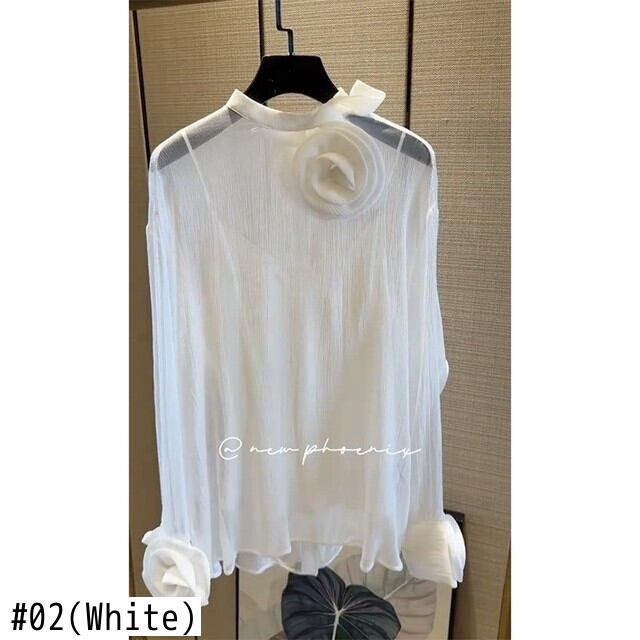Nomikuma 3D フラワー長袖サンスクリーンブラウス夏トップス因果デ ロング サマー 夏物 フラワーデザイン