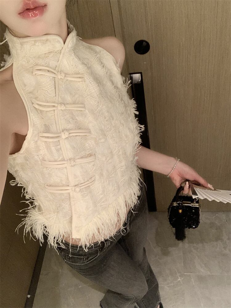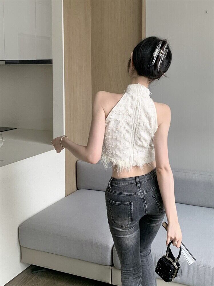 Nomikuma スタンドネックタンク夏ノースリーブスリムセクシースパイシーガールベストテルパッチワーククロップトップス サマー 夏物