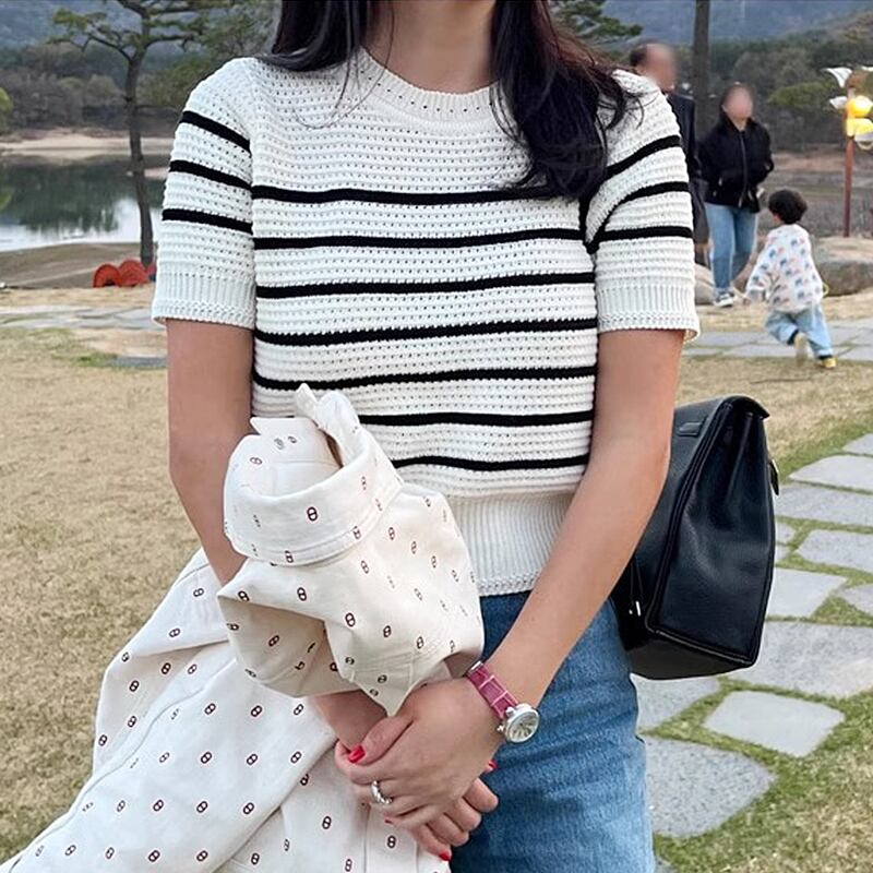 Nomikuma 半袖ニットトップスサマーシャツ因果 O ネックグラフィック T シャツ ショート ハーフスリーブ 夏物 Oネック Tシャツ