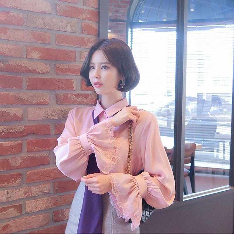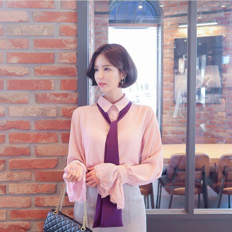 Nomikuma リボン包帯シフォンシャツフレア長袖秋ブラウスターンダウンカラー ロング オータム 秋物