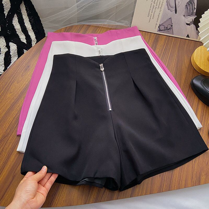 Nomikuma ジッパーウエストスーツ因果ワイドレッグショート夏ショーツ Pantalones Cortos デ サマー 夏物 ブルマー ワイドパンツ ソリッドカラー