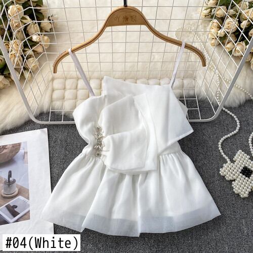 Nomikuma スリングベスト夏シックダイヤモンド甘いキャミソールセクシー背中開いたスリムウエストフリルタンクトップ 大人ガーリー スウィート キュート カジュアル サマー 夏物