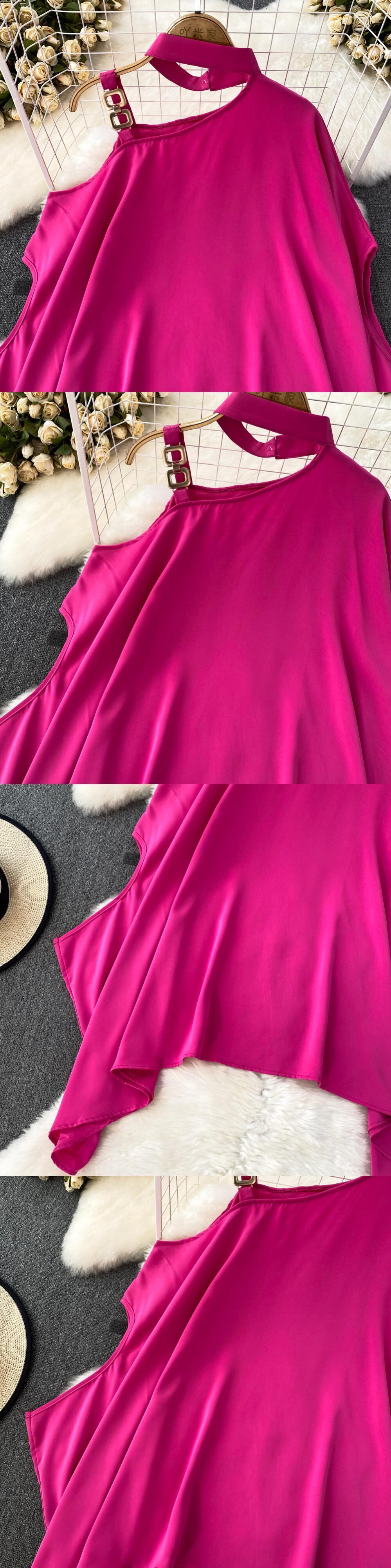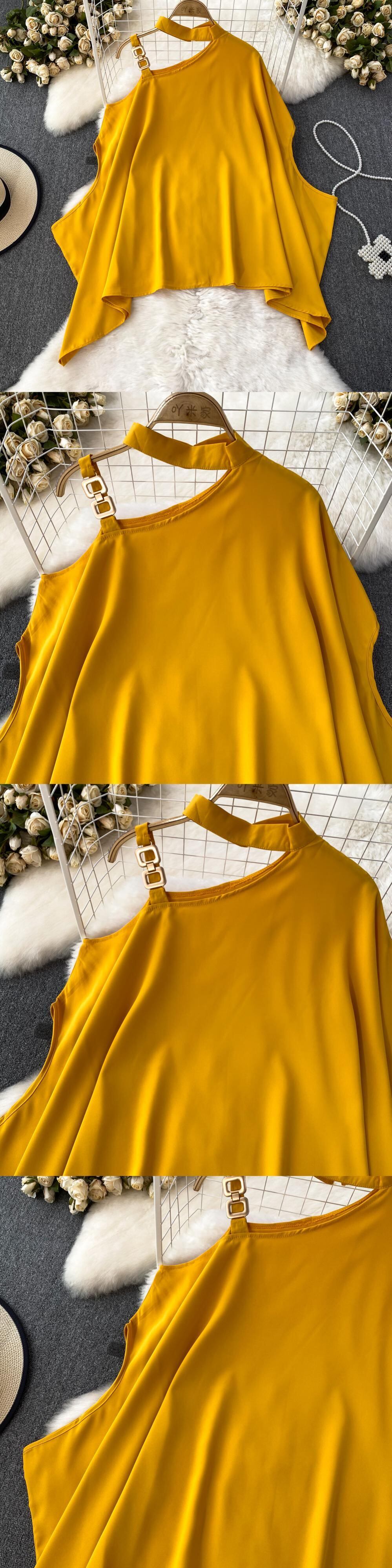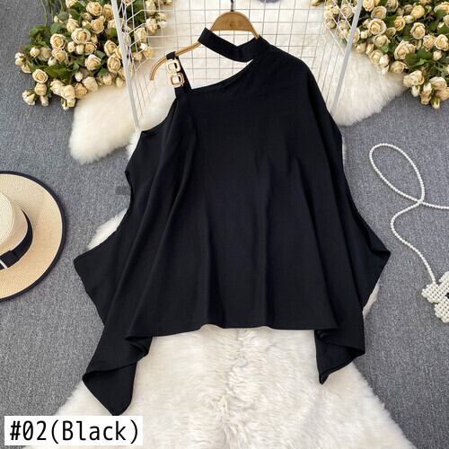 Nomikuma 夏バットウィングスリーブホルターストラップレス因果不規則ブラウスプルオーバーデ サマー 夏物 ソリッドカラー