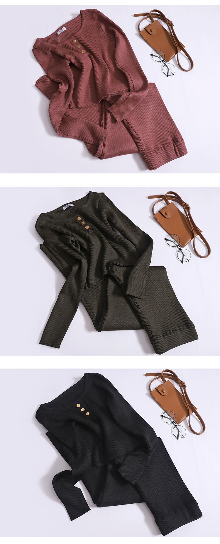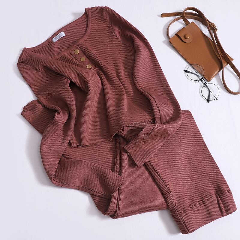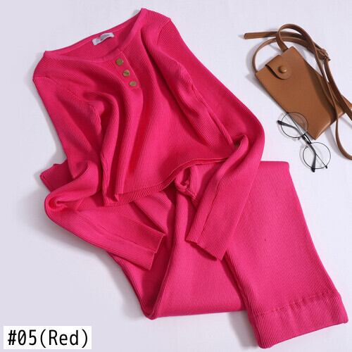 Nomikuma ニット 2 枚セットスリム長袖ショートトップス + ウエストワイドレッグロングパンツ衣装 ワイドパンツ