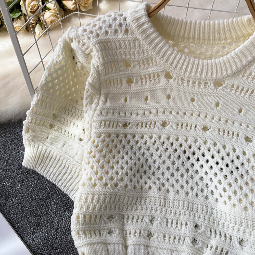 Nomikuma 中空パフスリーブニットトップス夏スリムショート Y2k トップシャツ サマー 夏物